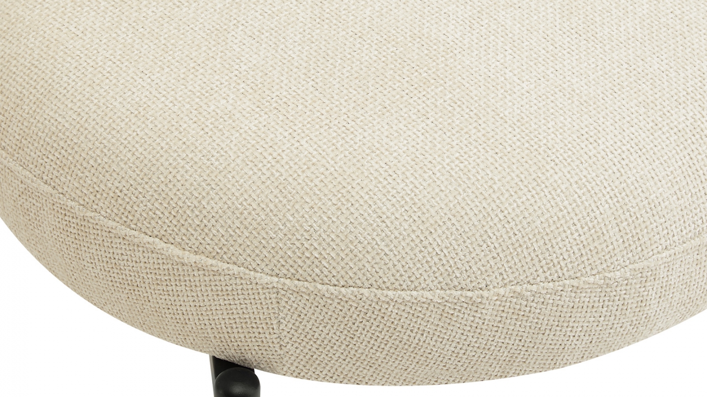Tabouret de bar en tissu chenille - Orla • Matière de la structure : Métal • Revêtement : Tissu chenille 330 g/m² • Couleur : Beige • Piètement en métal noir sable • Dimensions totales : 49 x 52,5 x 94 cm • Largeur de l'assise : 45 cm • Profondeur de l'assise : 49 cm • Hauteur de l'assise : 66 cm