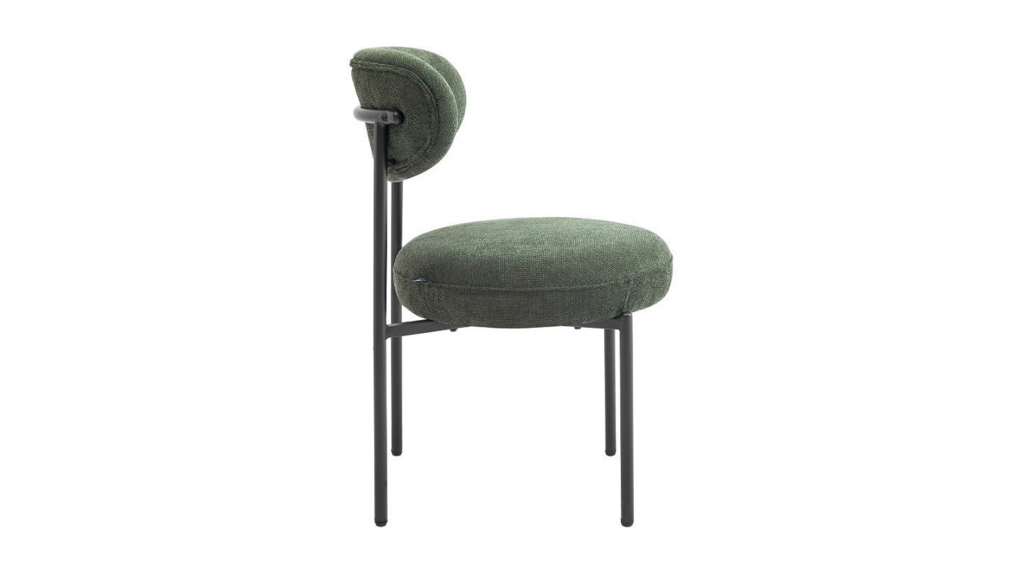 Tabouret de bar en tissu chenille - Orla • Matière de la structure : Métal • Revêtement : Tissu chenille 400 g/m² certifié Oekotex® • Couleur : Vert • Piètement en métal noir sable • Dimensions totales : 49 x 52,5 x 94 cm • Largeur de l'assise : 45 cm • Profondeur de l'assise : 49 cm • Hauteur de l'assise : 66 cm