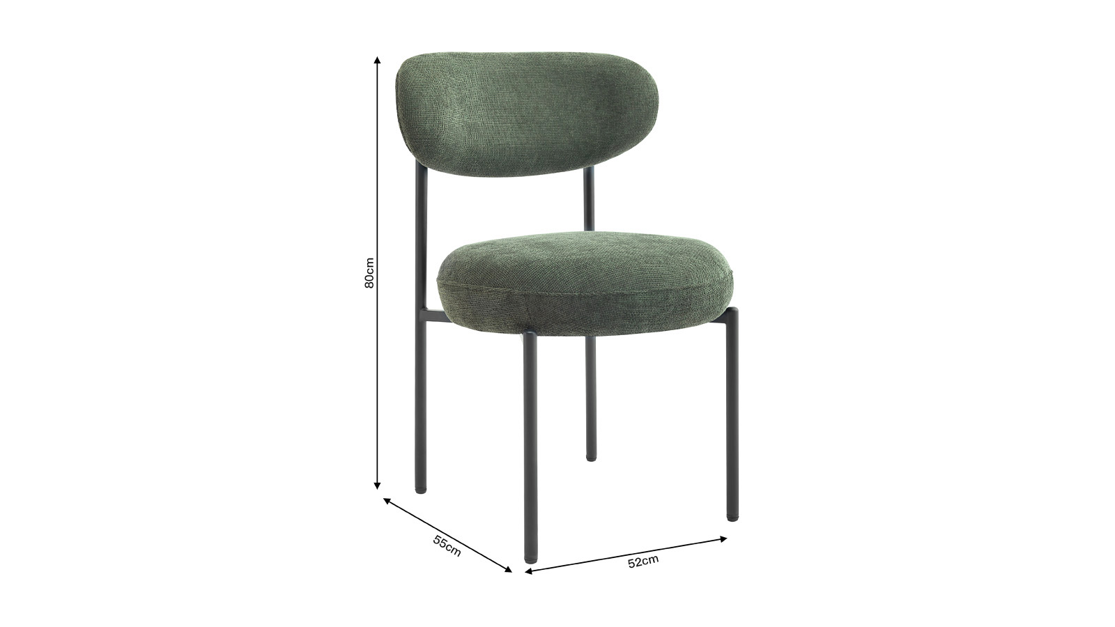 Chaise de salle à manger en tissu chenille - Orla• Matière de la structure : Métal• Revêtement : Tissu chenille 400 g/m² certifié Oekotex®• Couleur : Terracotta• Piètement en métal noir sable• Dimensions totales : 53 x 58 x 79 cm• Largeur de l'assise : 49 cm• Profondeur de l'assise : 42 cm• Hauteur de l'assise : 12 cm