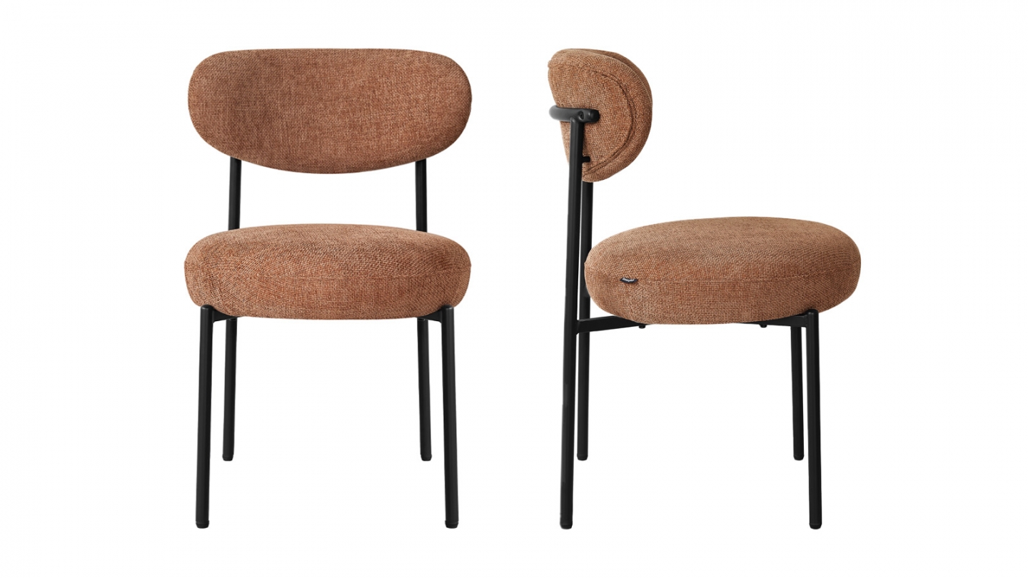 En stockLot de 2 chaises de salle à manger - Dulce• Structure et piètement en métal chromé• Assise et dossier en Tissu bouclé 600 g/m² certifié Oeko-Tex• Couleur : Rouille• Garnissage de l'assise : Mousse 28 kg / m3• Garnissage du dossier : Mousse 20 kg / m3• Dimensions totales : 54 x 50 x 85 cm• Largeur de l'assise : 49 cm• Profondeur de l'assise : 41 cm•...