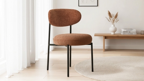 La chaise de salle à manger Orla séduit par son design contemporain et épuré, idéal pour intégrer facilement tous les styles d’intérieur. Son revêtement en tissu chenille terracotta, certifié Oeko-Tex, offre une texture douce et agréable au toucher tout en garantissant résistance et durabilité au quotidien. La teinte terracotta apporte une touche chaleureuse et vibrante, parfaite pour créer une atmosphère accueillante et conviviale dans votre espace repas.