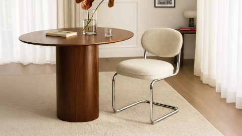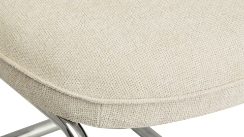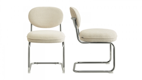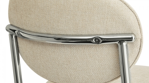 La chaise de salle à manger Lou séduit par son design rétro chic, à la fois élégant et facile à intégrer dans tous les styles d’intérieurs. Son revêtement en tissu chenille beige apporte une sensation de douceur et une atmosphère chaleureuse autour de la table, tout en offrant un rendu visuel raffiné et tendance. Cette teinte lumineuse s’accorde facilement avec différents univers décoratifs, du contemporain au plus classique.