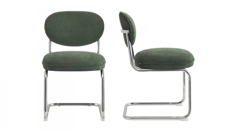 La chaise de salle à manger Lou séduit par son design rétro chic, élégant et facile à intégrer dans tous les styles d’intérieurs. Son revêtement en tissu chenille vert apporte une touche naturelle et contemporaine, idéale pour dynamiser la salle à manger tout en créant une atmosphère chaleureuse et conviviale. La teinte verte se marie facilement avec différents univers décoratifs, du bois clair au métal foncé, pour un rendu harmonieux et tendance.