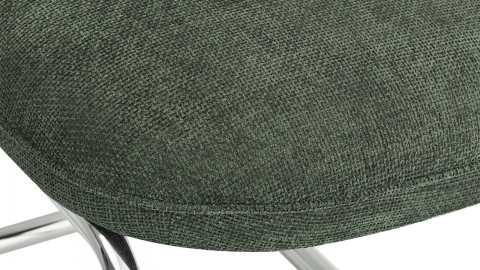 Tabouret de bar en tissu chenille - Lou • Matière de la structure : Métal • Revêtement : Tissu chenille • Couleur : Vert • Piètement luge en acier acier chromé • Dimensions totales : 44 x 55,5 x 97 cm • Largeur de l'assise : 44 cm • Profondeur de l'assise : 42 cm • Hauteur de l'assise : 14 cm