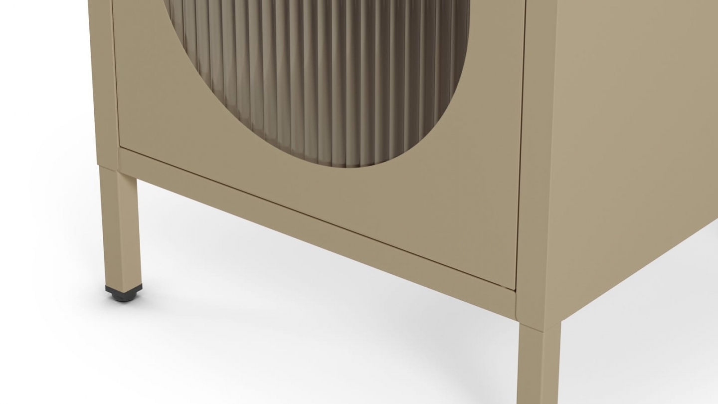 Buffet - Ysia• Matière : Métal• Couleur : Beige• Portes ajourées avec empiècements géométriques en verre texturé pour une touche architecturale art déco revisitée• Piètement et poignées en métal beige• Rangements : 4 portes battantes, 1 tablette• Dimensions totales : 160 x 40 x 90 cm• Poids net : 32.5 kg