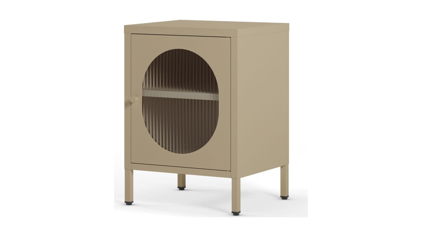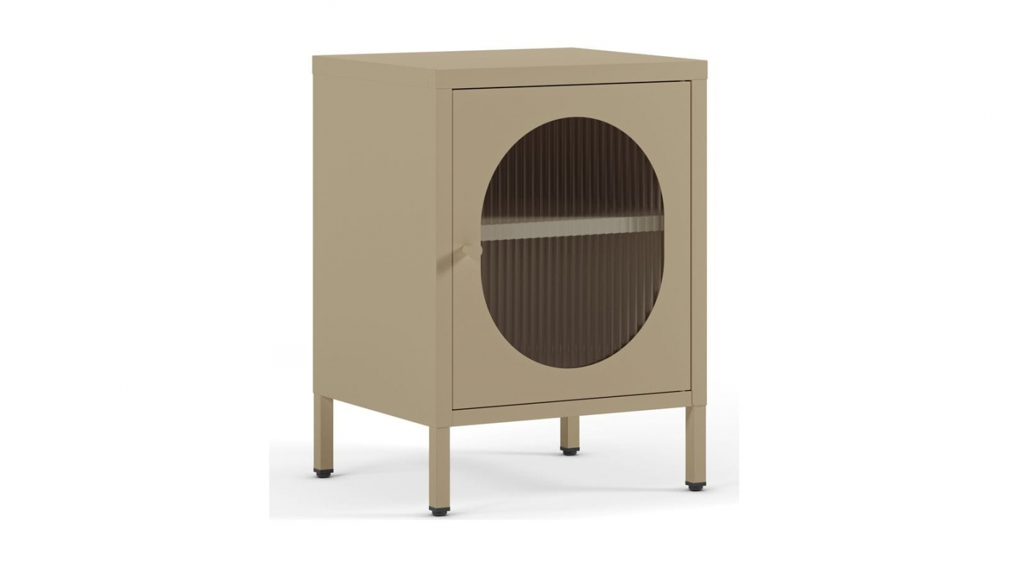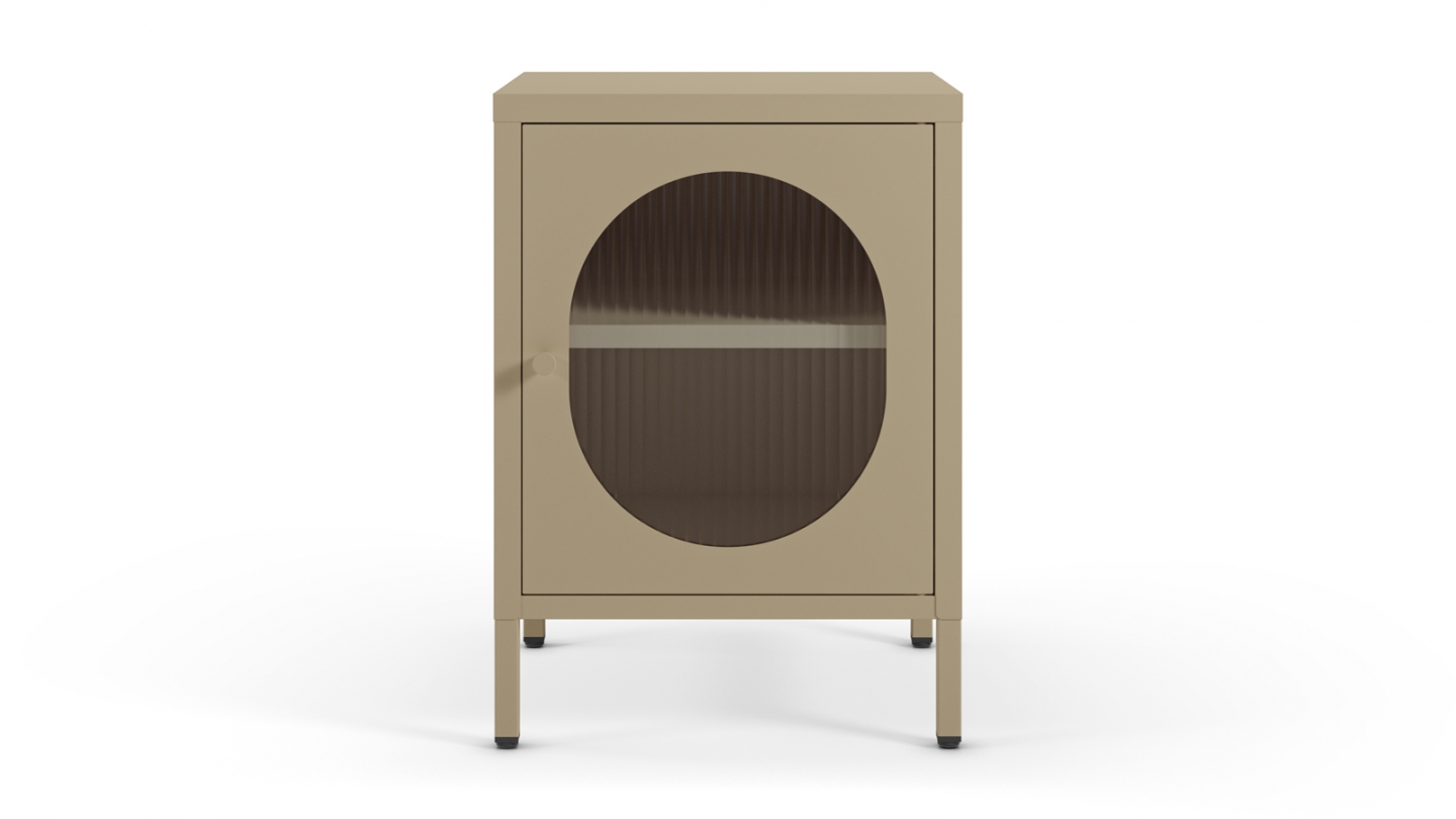 En stockBuffet - Ysia• Matière : Métal• Couleur : Beige• Portes ajourées avec empiècements géométriques en verre texturé pour une touche architecturale art déco revisitée• Piètement et poignées en métal beige• Rangements : 2 portes battantes, 2 tablettes• Dimensions totales : 70 x 40 x 100 cm• Poids net : 18.5 kg