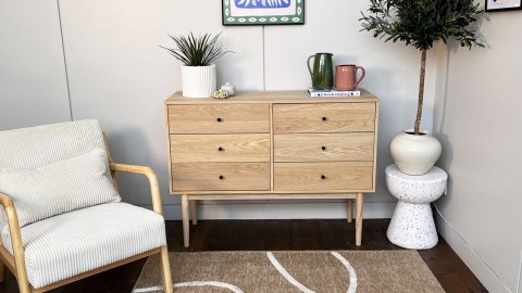 Découvrez la Commode en Chêne Naturel, un meuble de rangement polyvalent qui allie l'élégance du bois massif au charme du chêne naturel.
