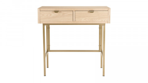 En stock• Console 2 tiroirs piètement métal doré - ALINE• 2 tiroirs avec poignées en métal doré• Couleur : bois naturel et doré • Matières : bois et métal • Piètement en métal doré • Dimensions totales : 80 x 34 x 79 cm • Garantie 1 an