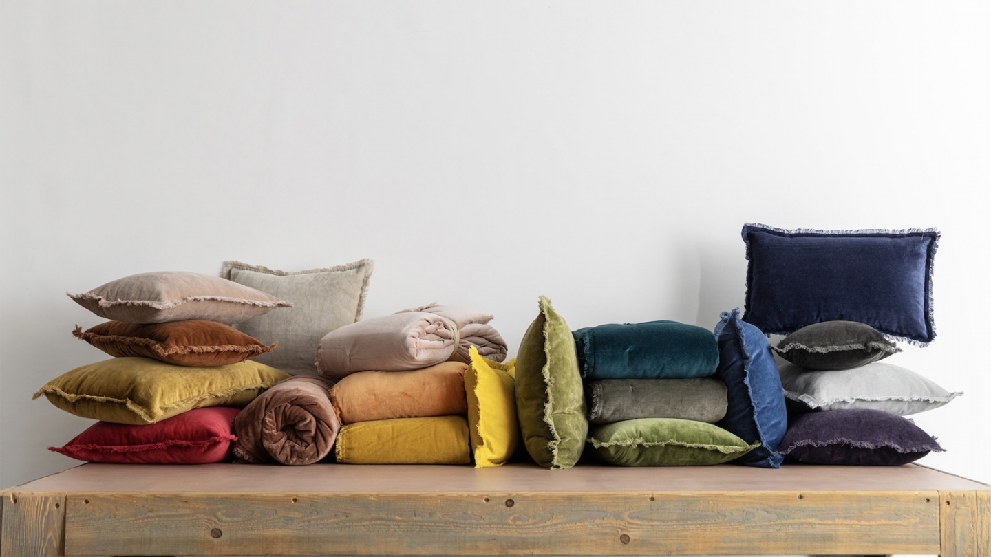 •Recto en velours de coton, verso en coton uni, finition frangée. Jeté de lit quilté avec garnissage 100 % polyester.