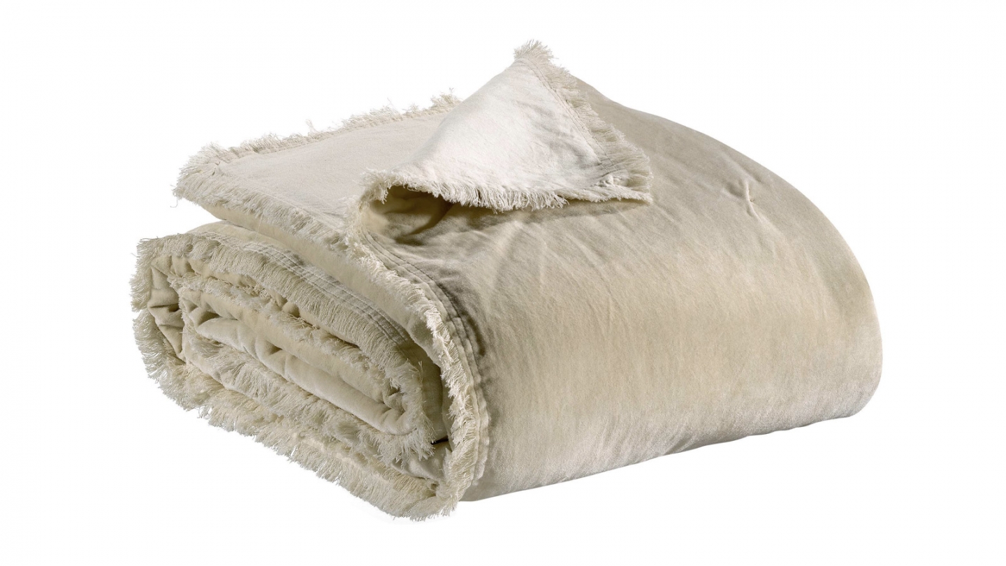 Jeté de lit en velours écru 240 x 260 cm - Fara