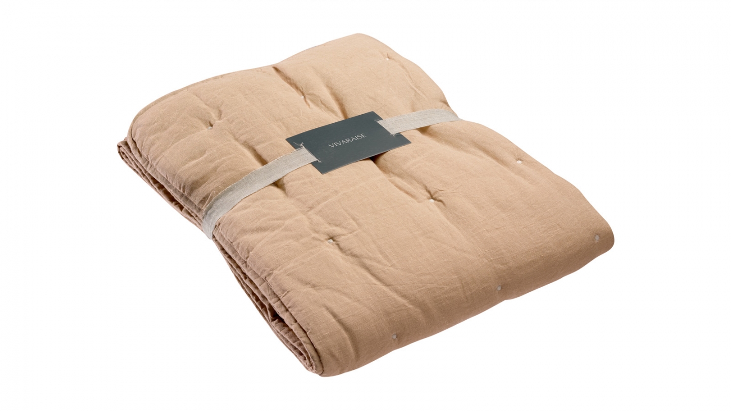 •Jeté de lit en 100 % lin (recto) et 100 % coton (verso), traité stonewashed pour un effet patiné. Finition brodée et toucher ultra doux pour une chambre au charme naturel et raffiné.