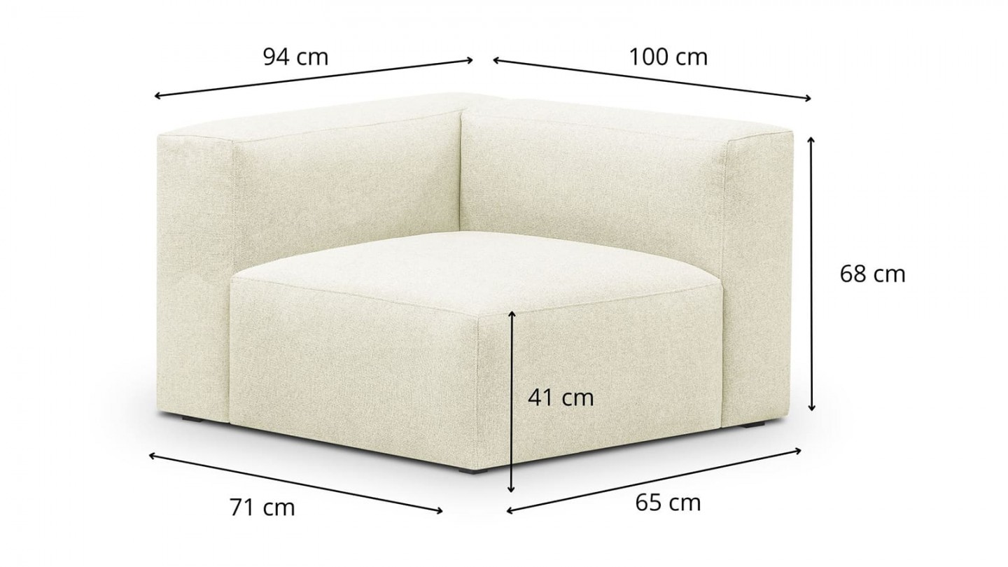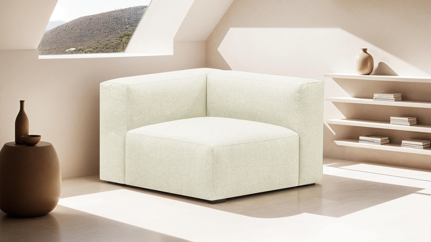 Découvrez le module chauffeuse d'angle à gauche Modulo en tissu ivoire. Un module qui offre à la fois confort et style, la pièce parfaite pour compléter créer votre propre combinaison avec nos modules Modulo. Grâce à son design bloc, il apporte une touche d'élégance à votre intérieur.