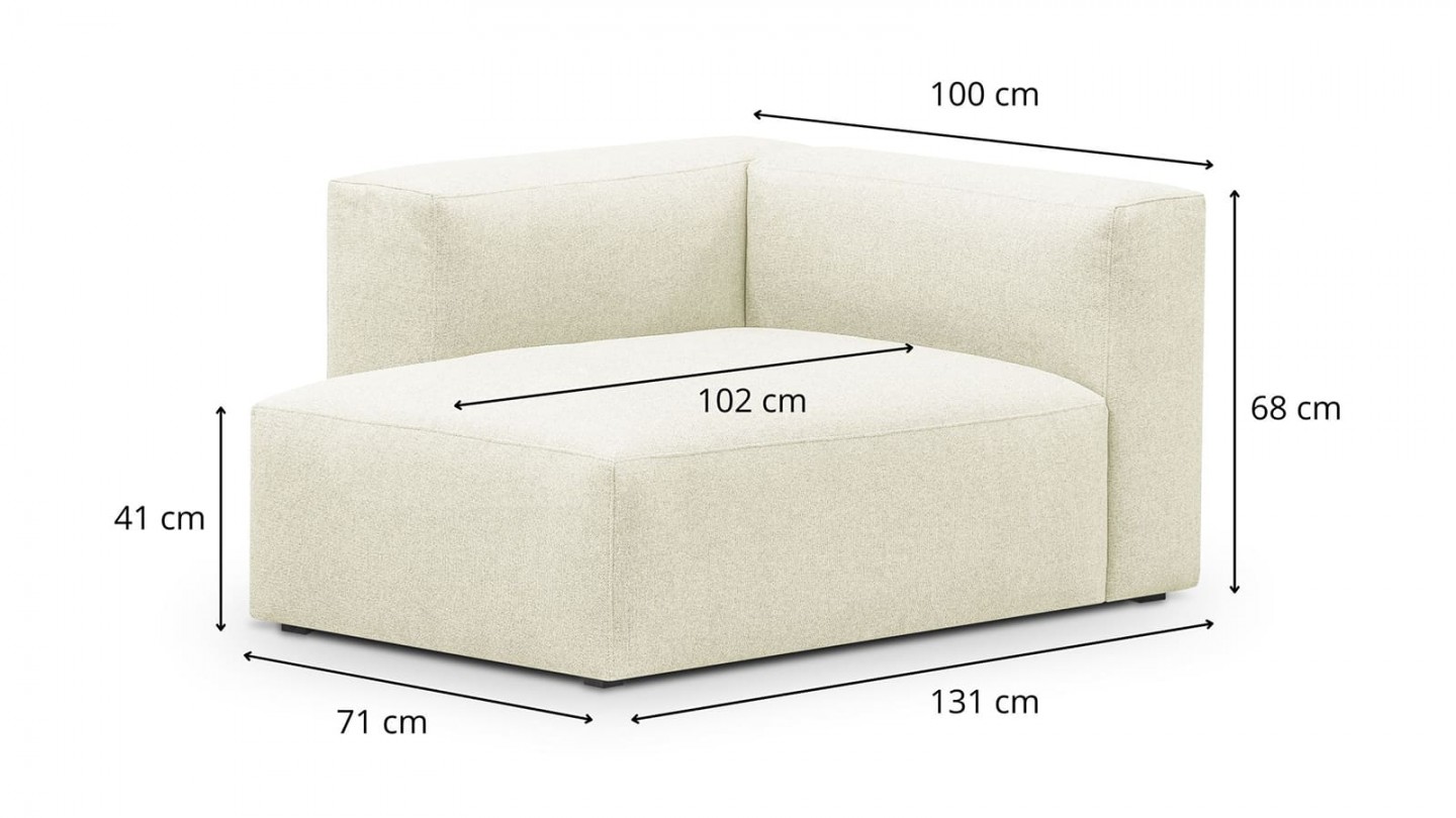 En stockMéridienne d'angle à droite modulable - Modulo• Module d'assise pour canapé évolutif Modulo. Peut s'utiliser seul ou combiné. Compatible avec tous les modules de la gamme MODULO• Système d'accroche invisible en métal pour faciliter l'assemblage des modules entre eux• Couleur : beige• Revêtement : Velours côtelé certifié Oekotex• Structure : Pin massif...