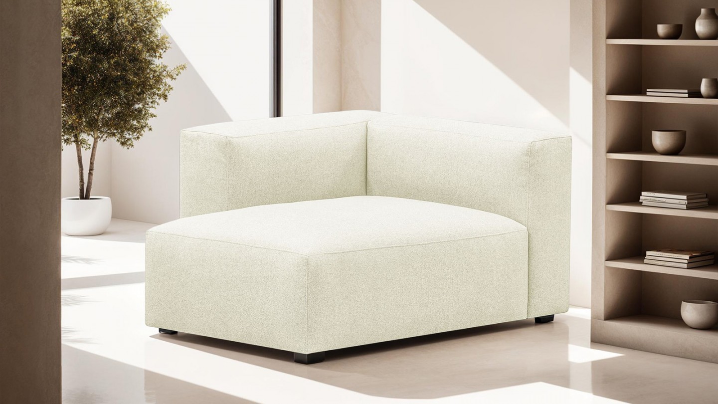 En stockChauffeuse d'angle à gauche modulable - Modulo• Module d'assise pour canapé évolutif Modulo. Peut s'utiliser seul ou combiné. Compatible avec tous les modules de la gamme MODULO• Système d'accroche invisible en métal pour faciliter l'assemblage des modules entre eux• Couleur : écru• Revêtement : Tissu bouclette 100% polyester 530 g/m² certifié...