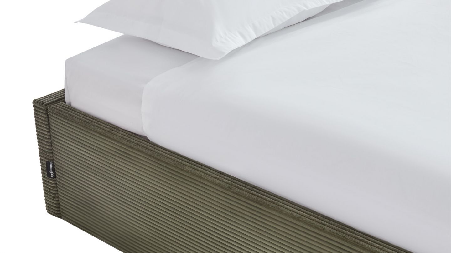Ensemble Lit adulte + matelas Lit coffre en velours côtelé - Tina• Structure : Contreplaqué issu de bois FSC, métal• Revêtement : Velours côtelé 380 g/m² certifié Oekotex®• Couleur : Vert• Avec sommier relevable à lattes et tête de lit• Garnissage : Mousse• Sommier 26 lattes (53x9 mm) en bois de peuplier• Dimensions du couchage : 140 x 190 cm• Dimensions...