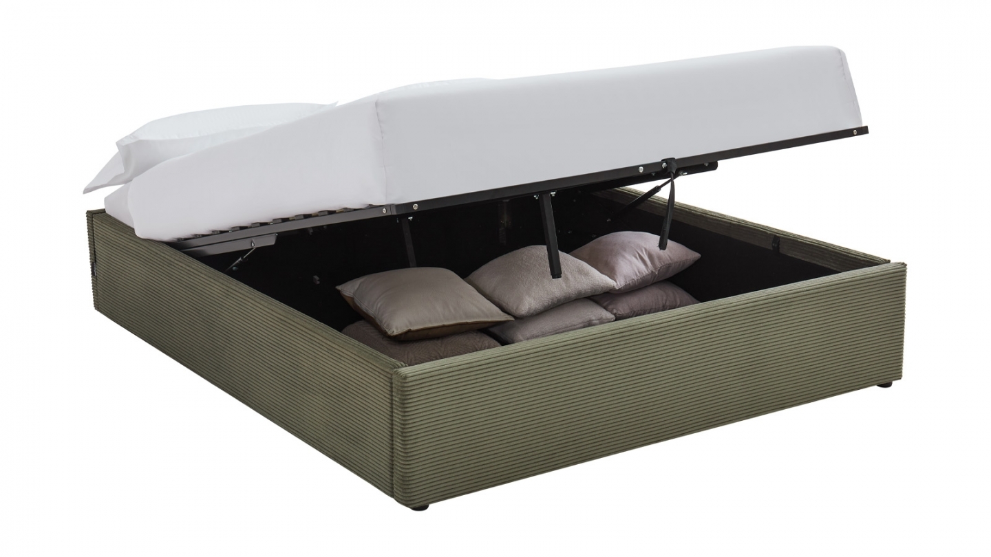 En stockEnsemble Lit adulte + matelas Lit coffre en velours côtelé - Handy• Structure : Contreplaqué issu de bois FSC, métal• Revêtement : Velours côtelé 380 g/m² certifié Oekotex®• Couleur : Vert• Avec sommier relevable à lattes• Garnissage : Mousse• Sommier 26 lattes (53x9 mm) en bois de peuplier• Dimensions du couchage : 160 x 200 cm• Dimensions totales : 214...