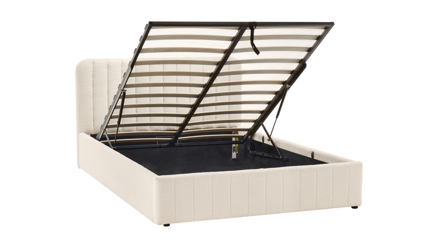 Ensemble Lit adulte + matelas Lit coffre en tissu bouclé - Tina• Structure : Contreplaqué issu de bois FSC, métal• Revêtement : Tissu bouclé 530 g/m² certifié Oekotex®• Couleur : Beige• Avec sommier relevable à lattes et tête de lit• Garnissage : Mousse• Sommier 26 lattes (53x9 mm) en bois de peuplier• Dimensions du couchage : 140 x 190 cm• Dimensions...