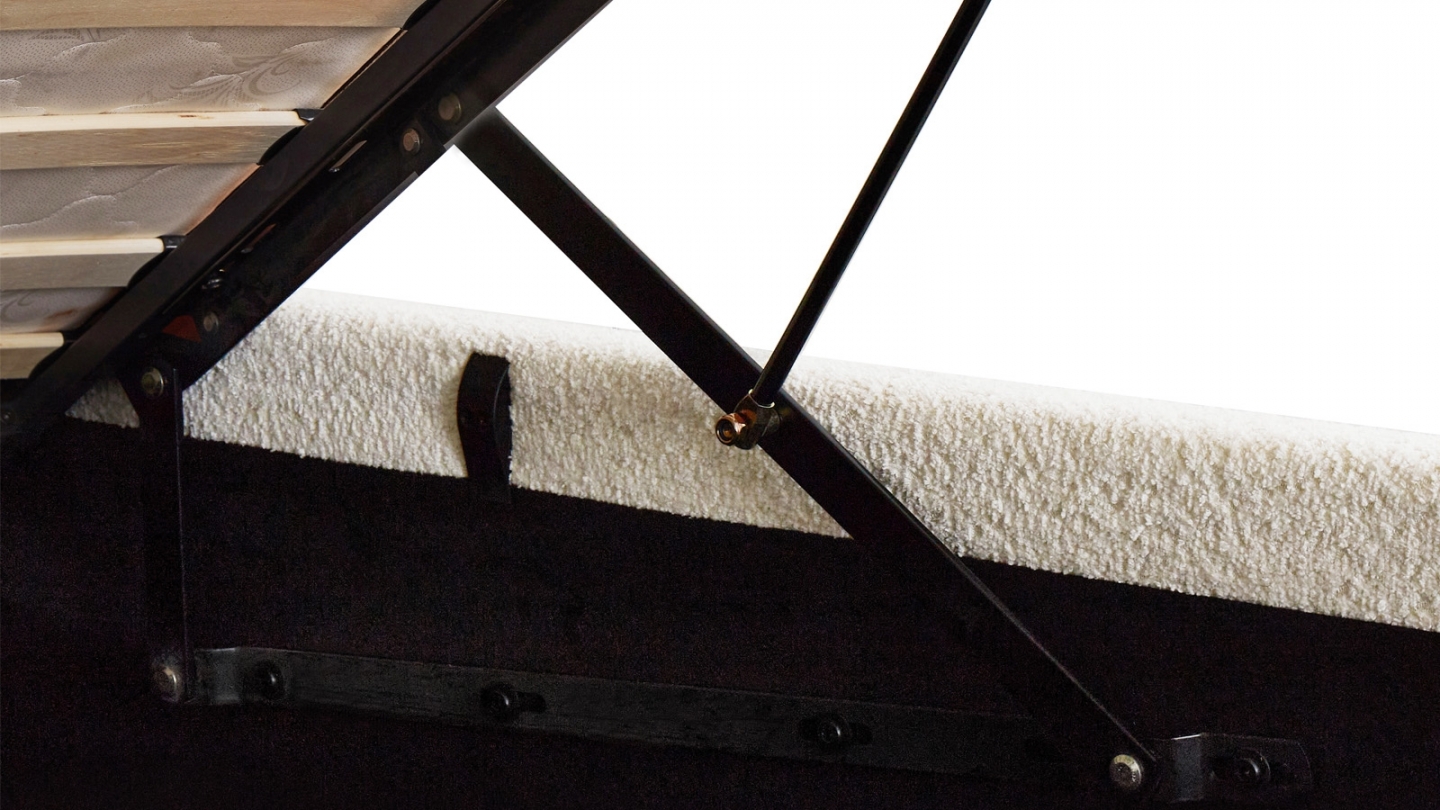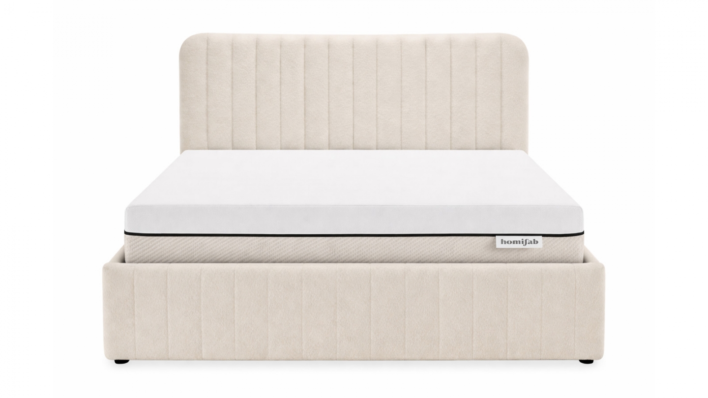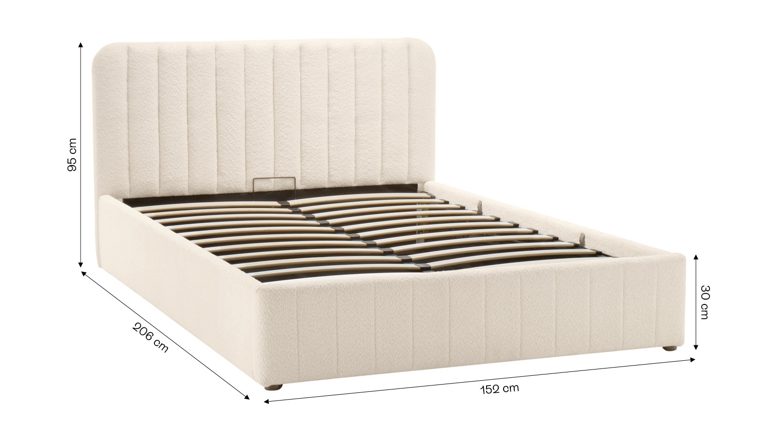 Ensemble Lit adulte + matelasLit coffre en tissu bouclé - Ava • Structure : MDF, bois massif • Revêtement : Tissu bouclé 560 g/m² • Couleur : Beige • Avec tête de lit capitonnée + sommier • Garnissage : Mousse de polyuréthane 22 kg/m3 • Sommier coffre - 24 lattes - avec vérins • Dimensions du couchage : 160 x 200 cm • Dimensions totales : 216...