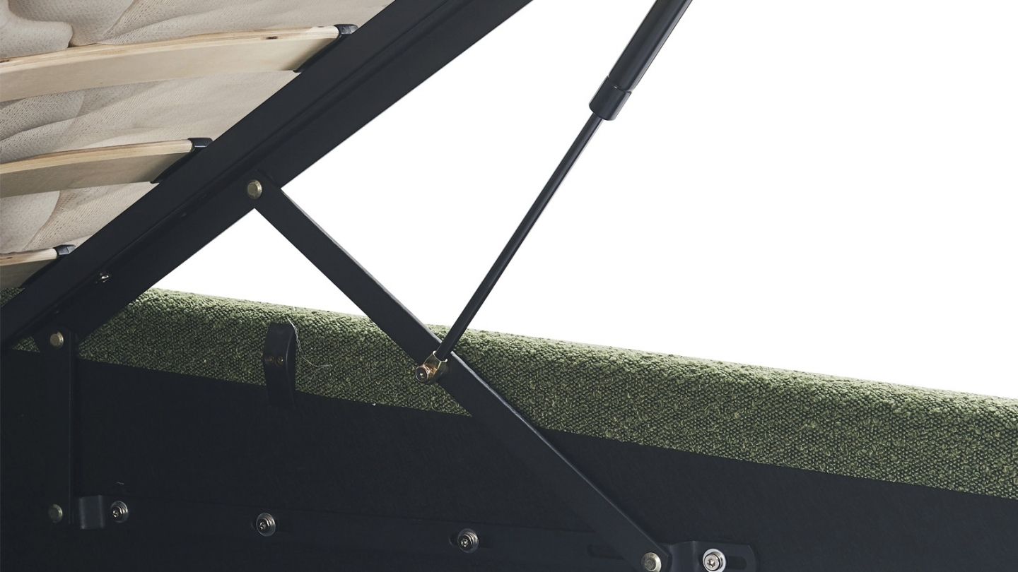 Ensemble Lit adulte + matelasLit coffre en velours - Ava • Structure : MDF, bois massif • Revêtement : Velours 240 g/m² • Couleur : Vert kaki • Avec tête de lit capitonnée + sommier • Garnissage : Mousse de polyuréthane 22 kg/m3 • Sommier coffre - 24 lattes - avec vérins • Dimensions du couchage : 160 x 200 cm • Dimensions totales : 216 x 172...