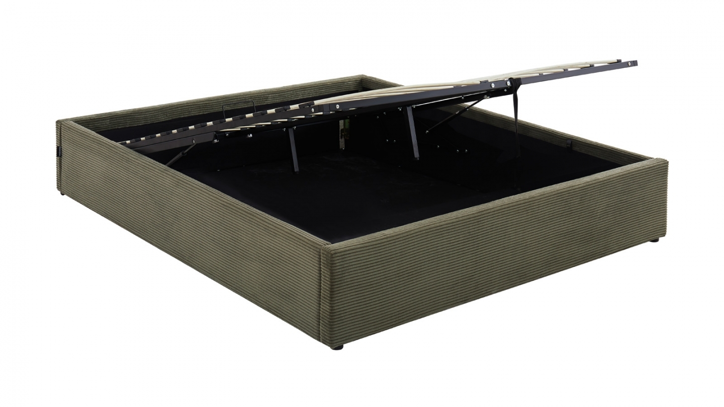 En stockEnsemble Lit adulte + matelas Lit coffre en velours côtelé - Handy• Structure : Contreplaqué issu de bois FSC, métal• Revêtement : Velours côtelé 380 g/m² certifié Oekotex®• Couleur : Vert• Avec sommier relevable à lattes• Garnissage : Mousse• Sommier 39 lattes (53x9 mm) en bois de peuplier• Dimensions du couchage : 180 x 200 cm• Dimensions totales : 214...