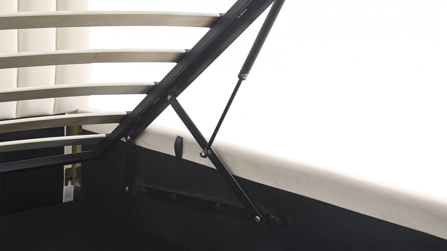 Ensemble Lit adulte + matelasLit coffre en velours - Ava • Structure : MDF, bois massif • Revêtement : Velours 240 g/m² • Couleur : Beige • Avec tête de lit capitonnée + sommier • Garnissage : Mousse de polyuréthane 22 kg/m3 • Sommier coffre - 24 lattes - avec vérins • Dimensions du couchage : 140 x 190 cm • Dimensions totales : 206 x 152 x 95...