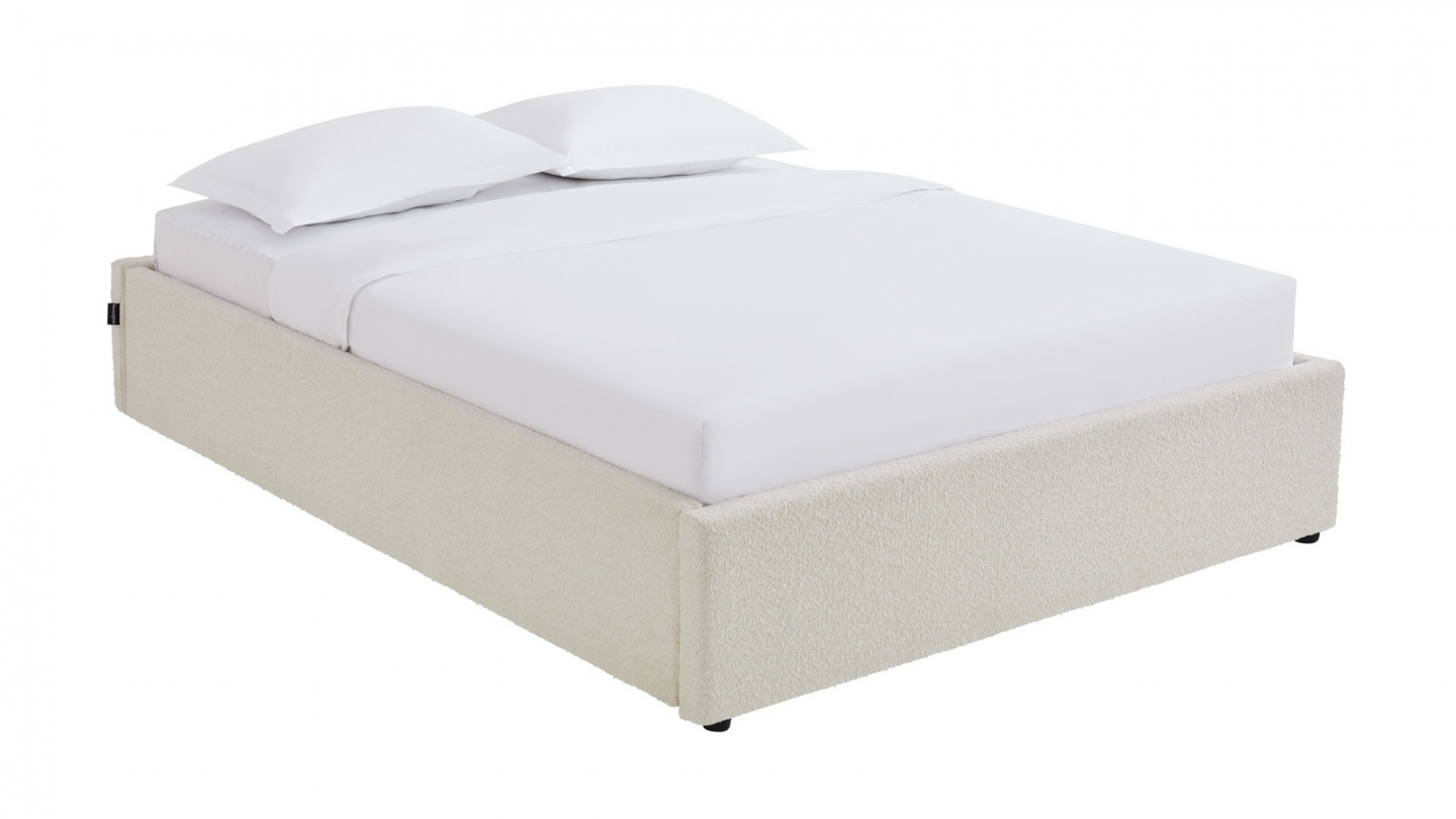 Ensemble Lit adulte + matelas Lit en tissu bouclé - Milo• Structure : MDF• Revêtement : Tissu bouclé 100% polyester 530 g/m² certifié Oekotex®• Couleur : Ecru• Avec sommier 24 lattes + tête de lit matelassée• Garnissage : Mousse• Dimensions du couchage : 160 x 200 cm• Dimensions totales : 220 x 170 x 78 cm• Dimensions de la tête de lit : 170x10,5x78 cm•...