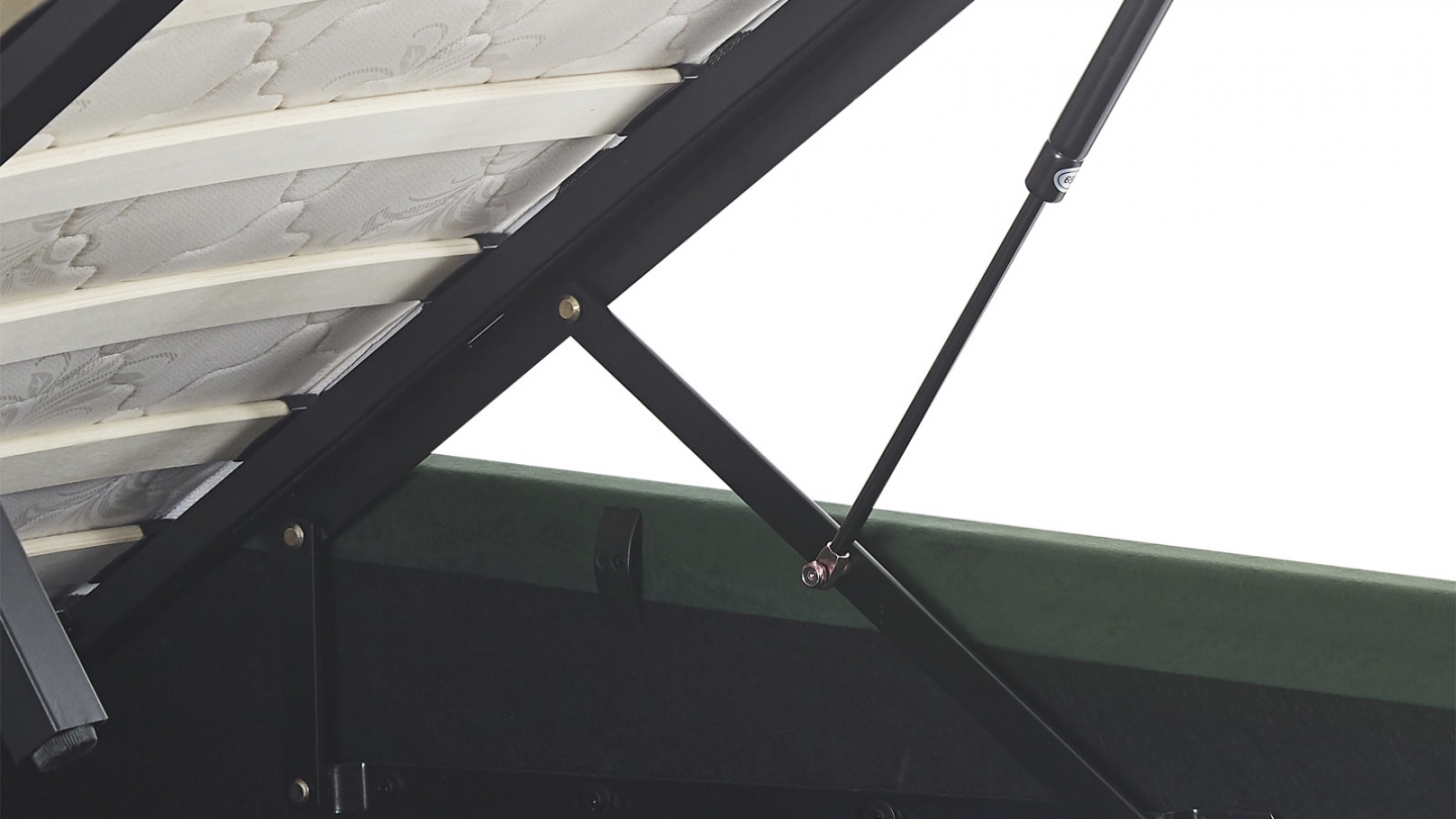 Ensemble Lit adulte + matelasLit coffre en velours - Ava • Structure : MDF, bois massif • Revêtement : Velours 240 g/m² • Couleur : Vert kaki • Avec tête de lit capitonnée + sommier • Garnissage : Mousse de polyuréthane 22 kg/m3 • Sommier coffre - 24 lattes - avec vérins • Dimensions du couchage : 140 x 190 cm • Dimensions totales : 206 x 152...