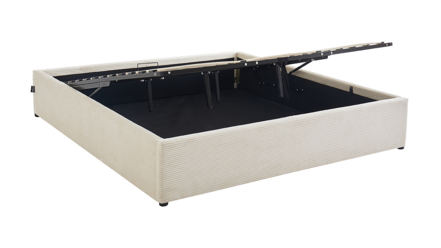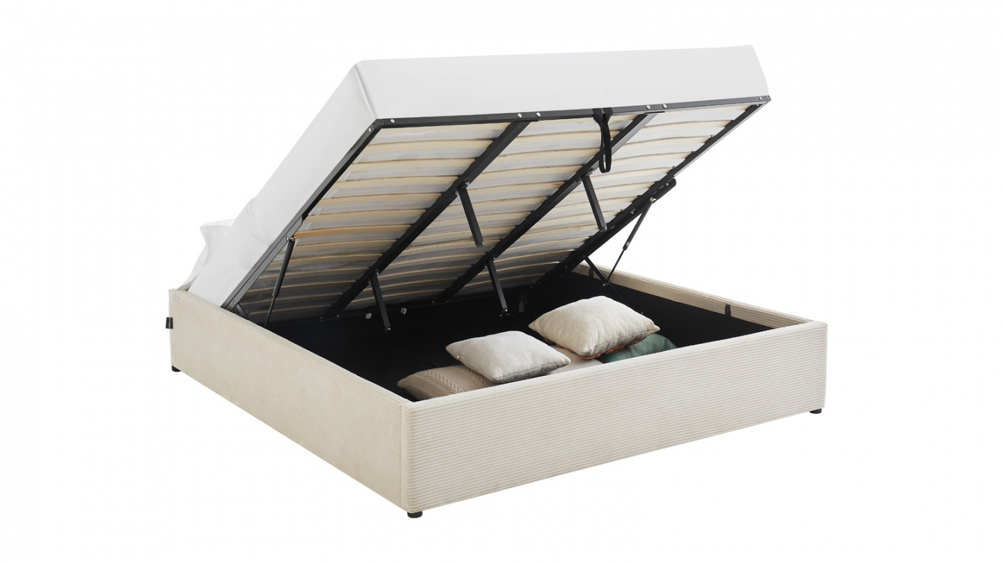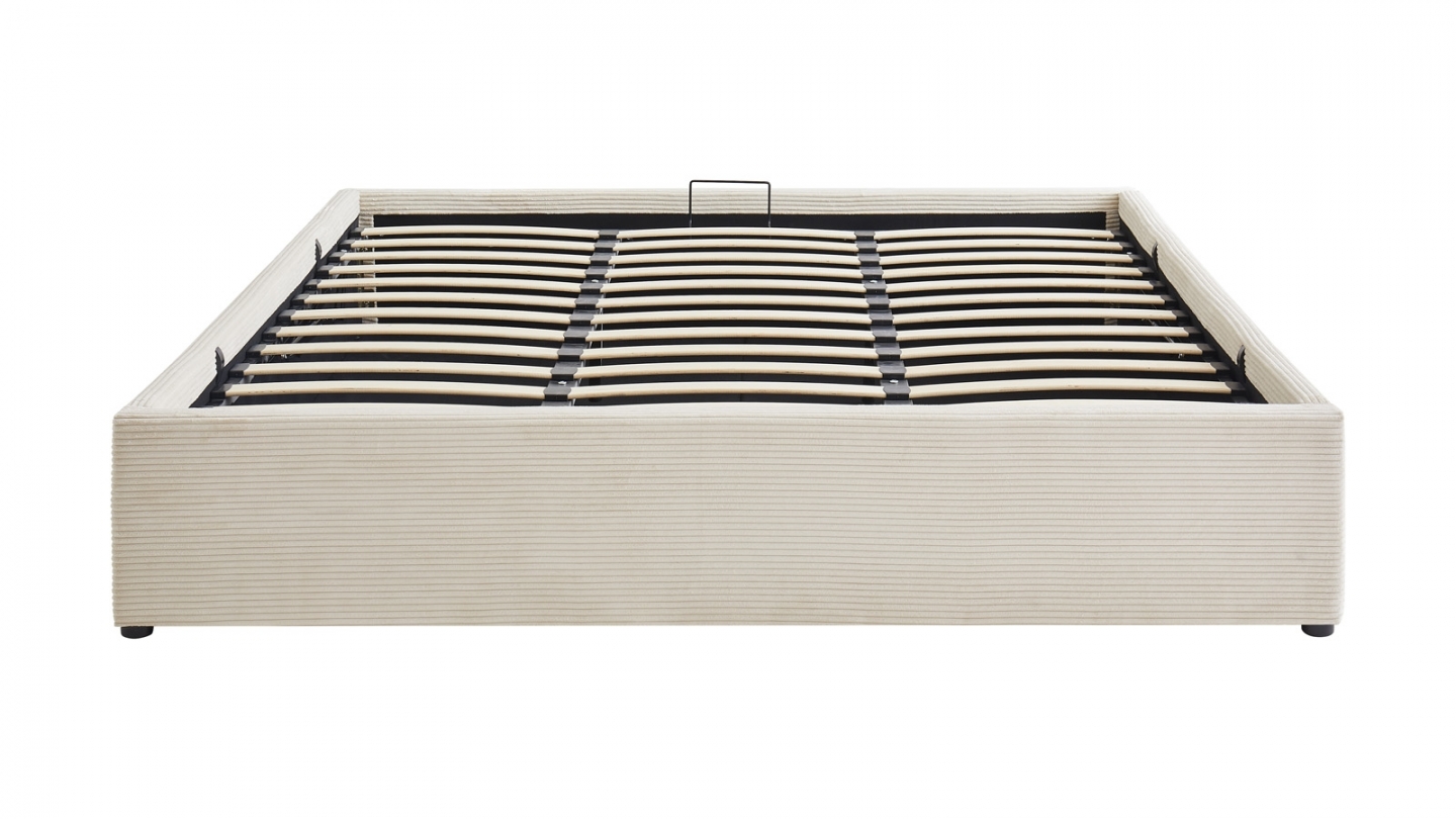 En stockEnsemble Lit adulte + matelas Lit coffre en velours côtelé - Handy• Structure : Contreplaqué issu de bois FSC, métal• Revêtement : Velours côtelé 380 g/m² certifié Oekotex®• Couleur : Beige• Avec sommier relevable à lattes• Garnissage : Mousse• Sommier 26 lattes (53x9 mm) en bois de peuplier• Dimensions du couchage : 160 x 200 cm• Dimensions totales :...