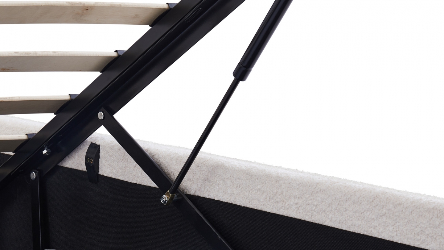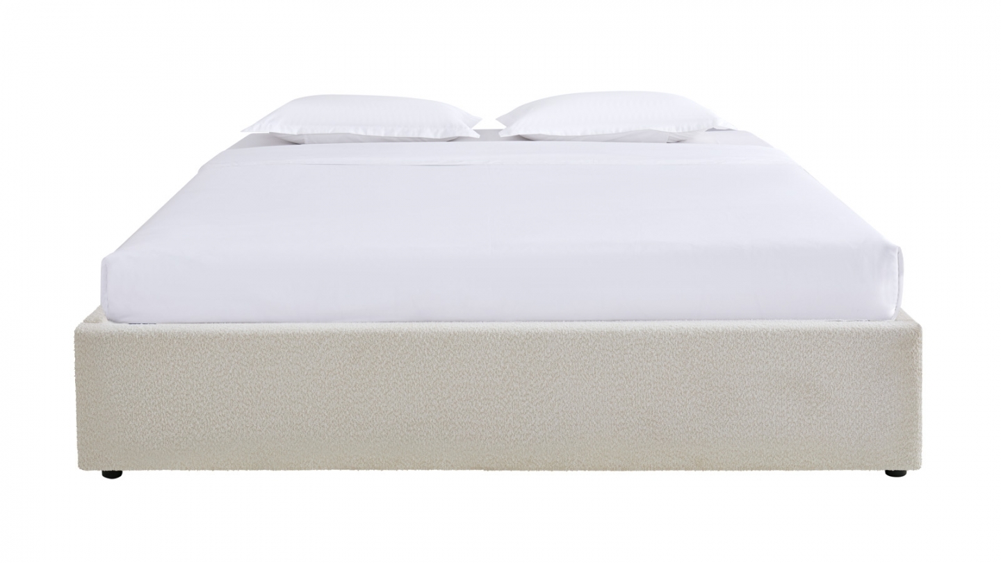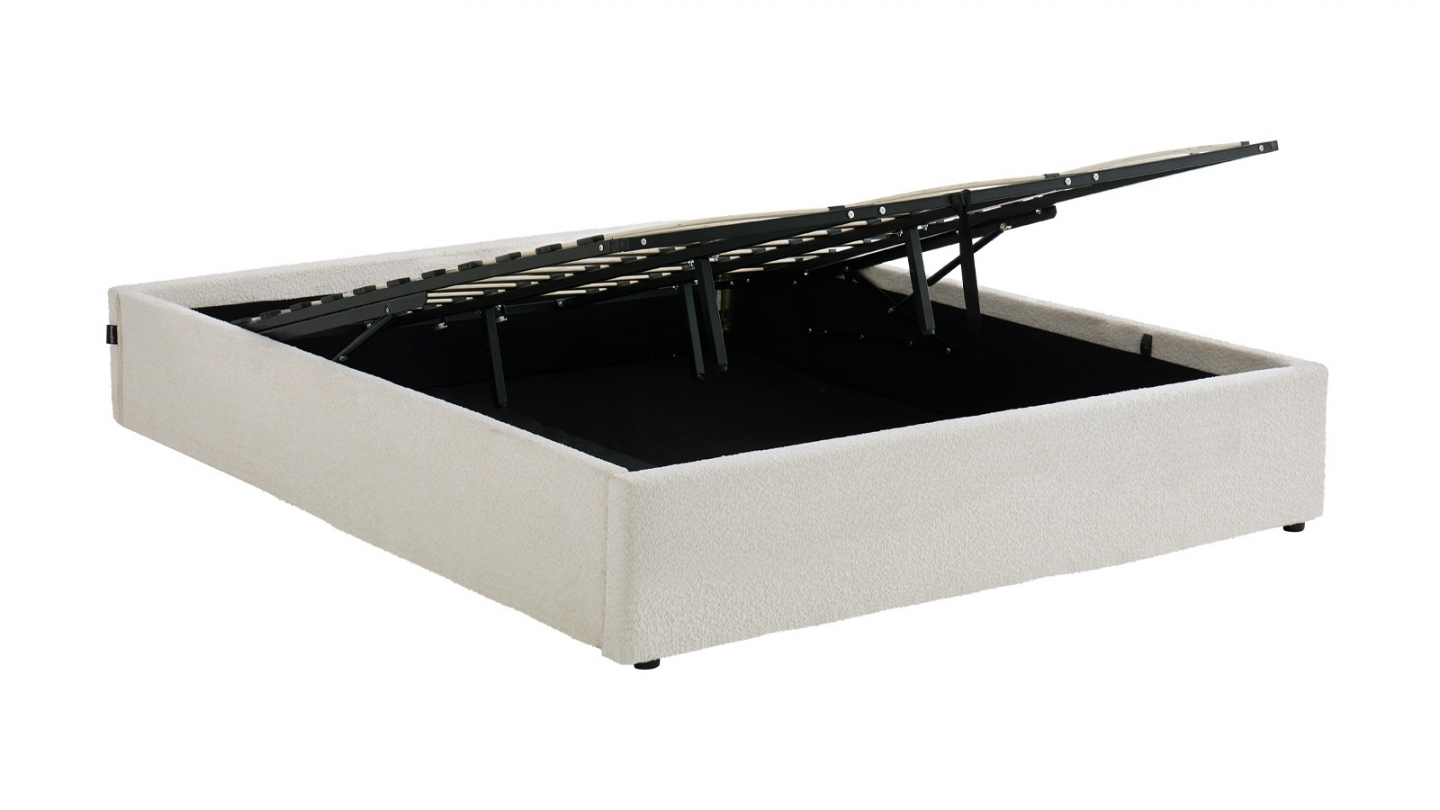 En stockEnsemble Lit adulte + matelasLit coffre en tissu bouclé - Ava • Structure : MDF, bois massif • Revêtement : Tissu bouclé 560 g/m² • Couleur : Beige • Avec tête de lit capitonnée + sommier • Garnissage : Mousse de polyuréthane 22 kg/m3 • Sommier coffre - 36 lattes - avec vérins • Dimensions du couchage : 180 x 200 cm • Dimensions totales : 216...