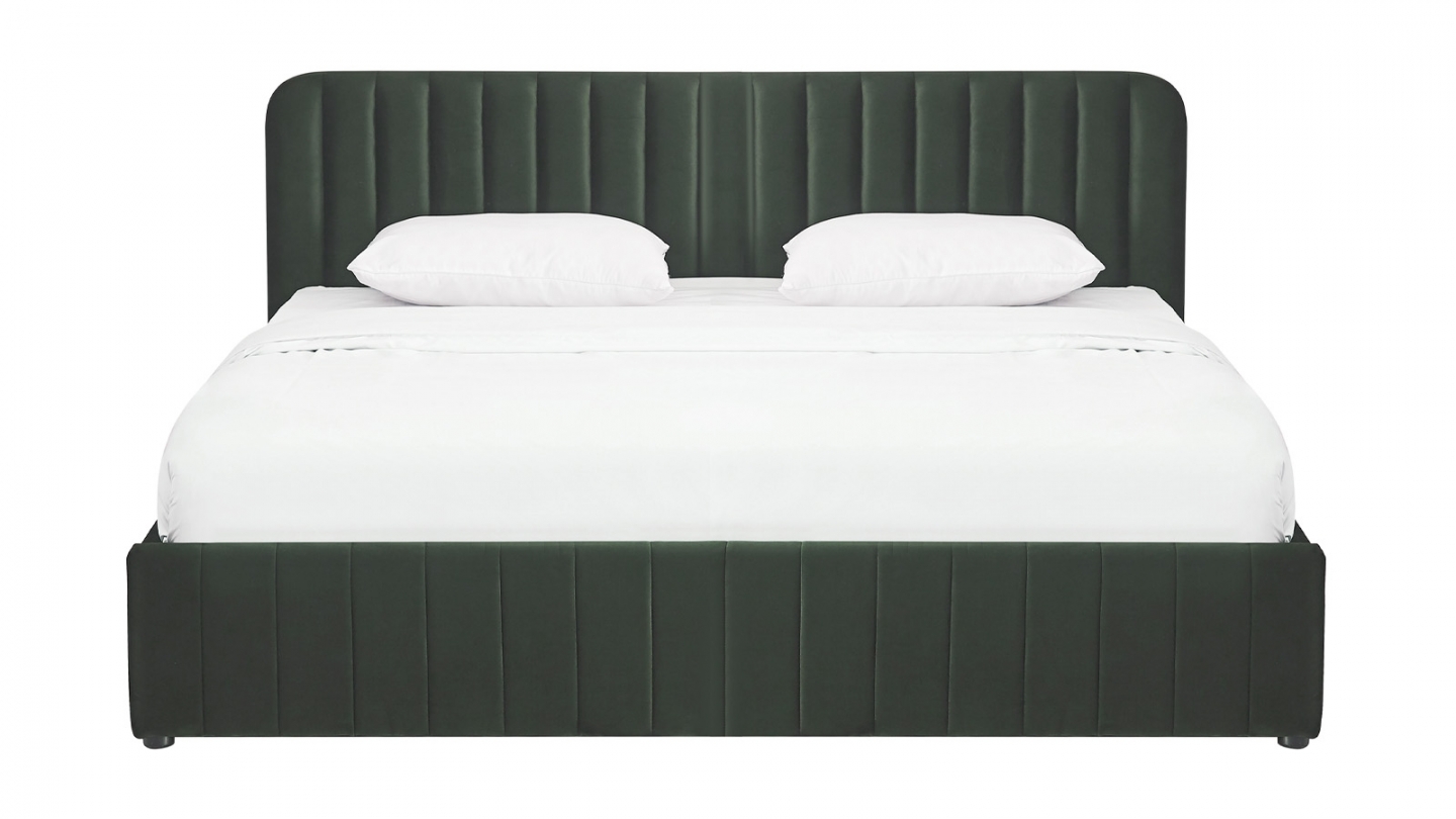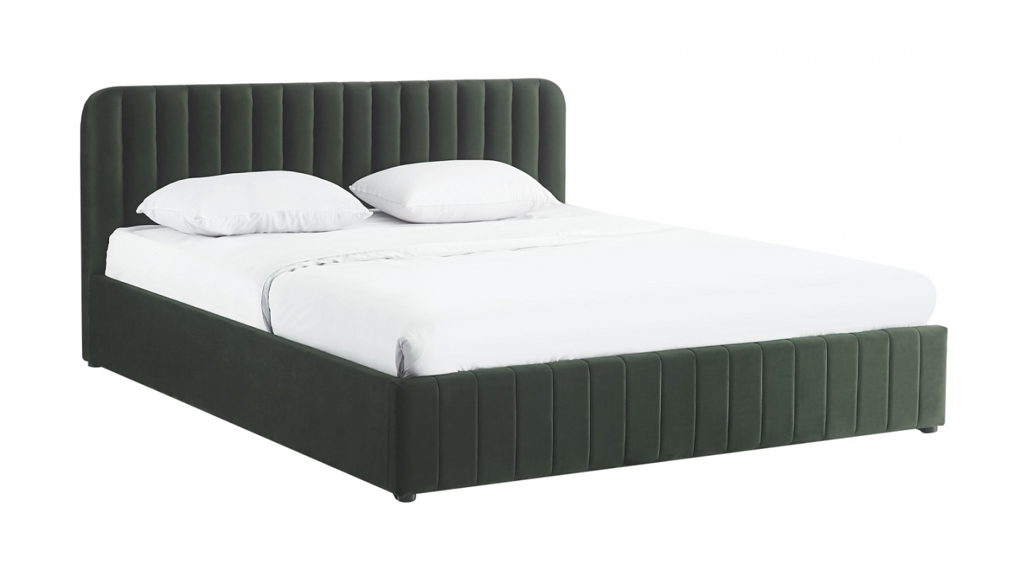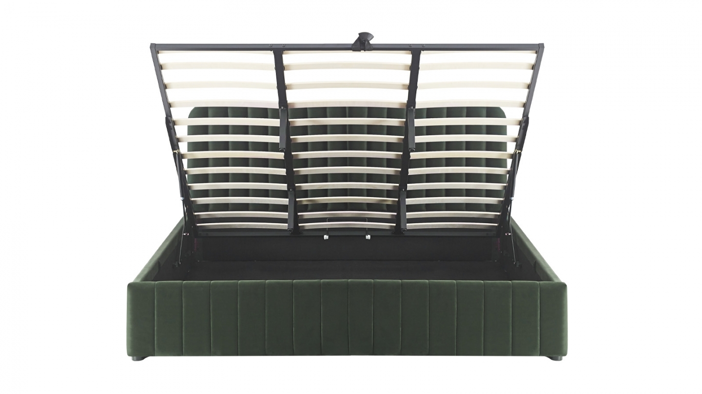 Ensemble Lit adulte + matelasLit coffre en velours - Ava • Structure : MDF, bois massif • Revêtement : Velours 240 g/m² • Couleur : Vert kaki • Avec tête de lit capitonnée + sommier • Garnissage : Mousse de polyuréthane 22 kg/m3 • Sommier coffre - 36 lattes - avec vérins • Dimensions du couchage : 180 x 200 cm • Dimensions totales : 216 x 192...