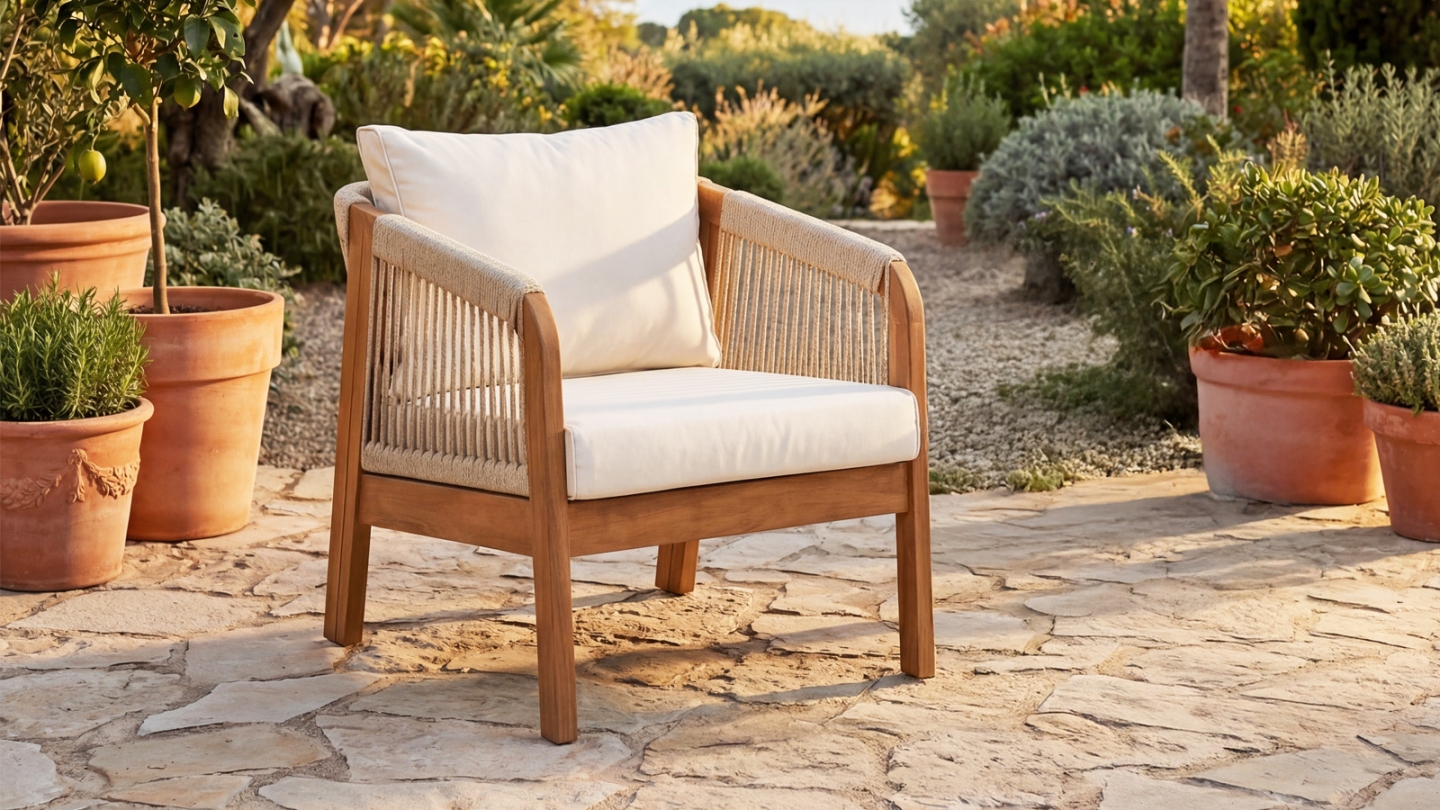 Le bois d’acacia est particulièrement adapté aux salons de jardin grâce à sa robustesse naturelle et sa résistance aux intempéries.