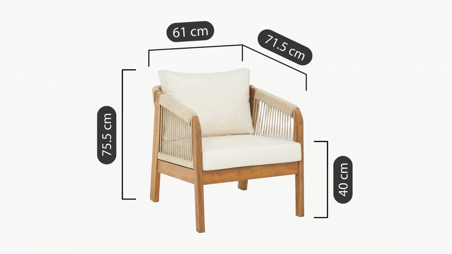 • Hauteur de l’assise : 38 cm avec coussin