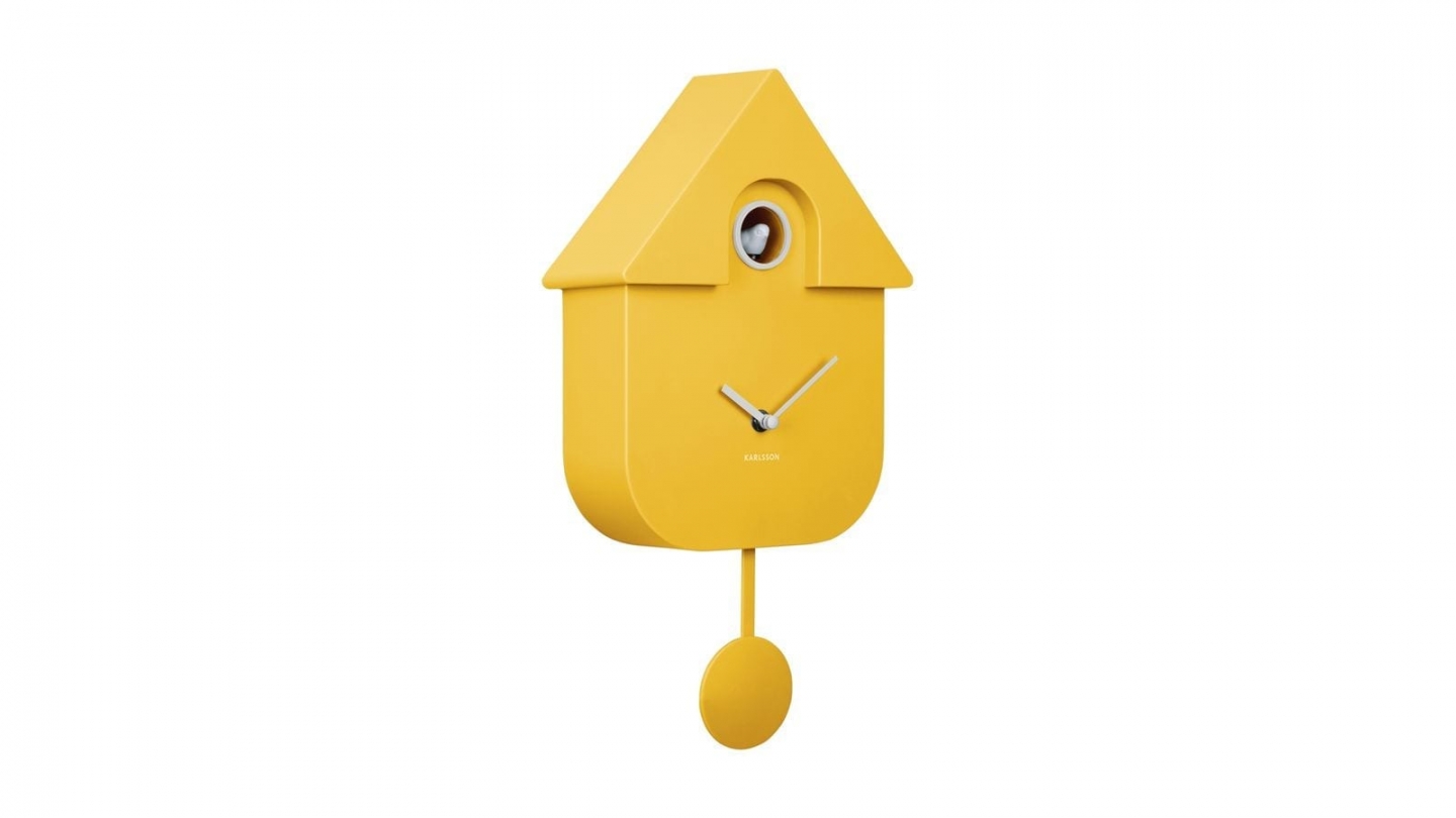 En stockHorloge murale en métal jaune - Modern Cuckoo L’horloge murale Modern Cuckoo de Karlsson revisite avec audace le style classique dans une version résolument contemporaine. Best-seller de la marque, elle se distingue par son boîtier en ABS et son cadre métallique. • Coloris : Jaune Orcher • Dimensions : 21,5 x 41 cm • Matière : Métal