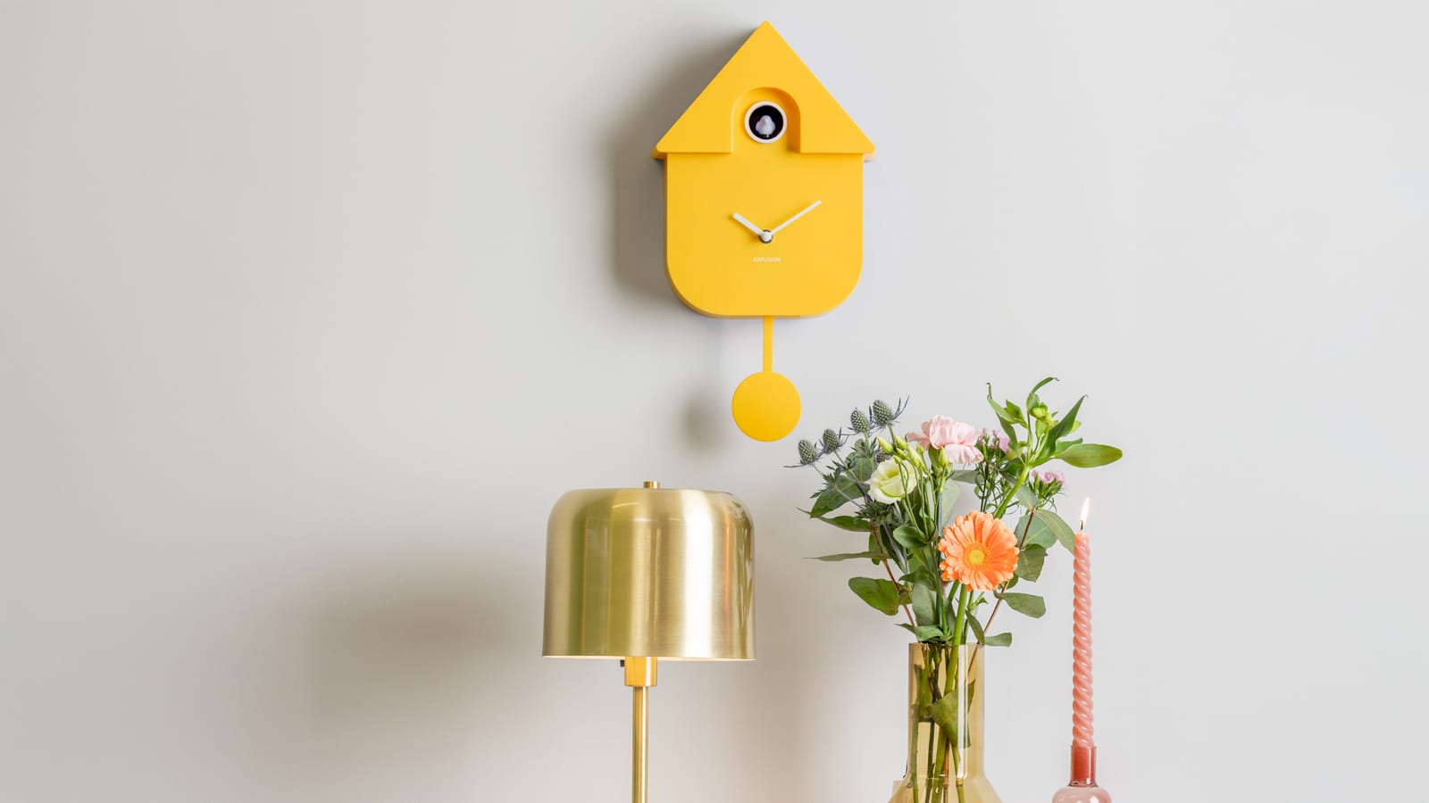 Horloge murale en métal jaune ochre - Modern Cuckoo