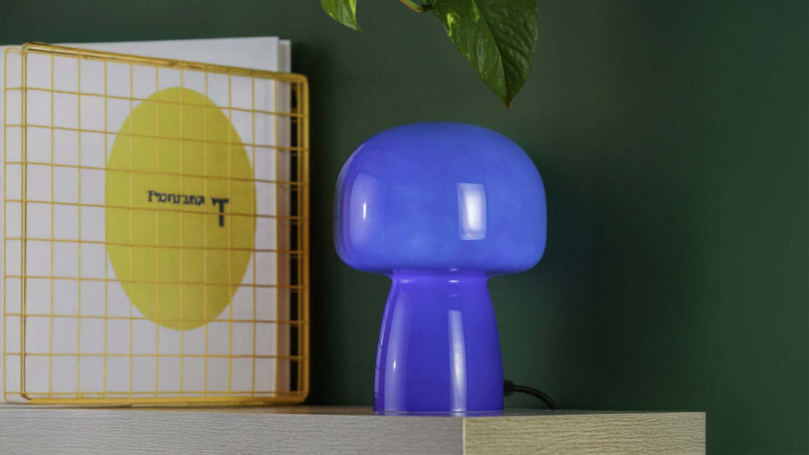 Lampe à poser champignon en verre bleu cobalt - Fervor