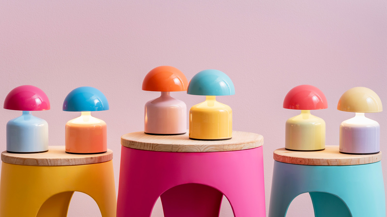 Lampe de table champignon LED en métal jaune et bleu - Impetu