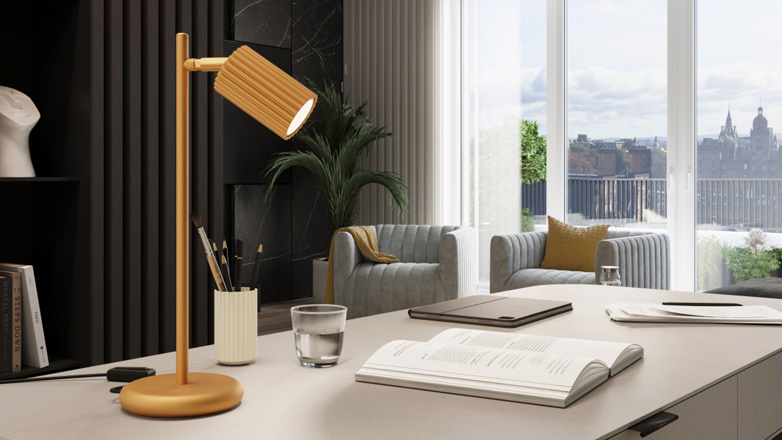 Lampe à poser en aluminium cannelé or - Karbon