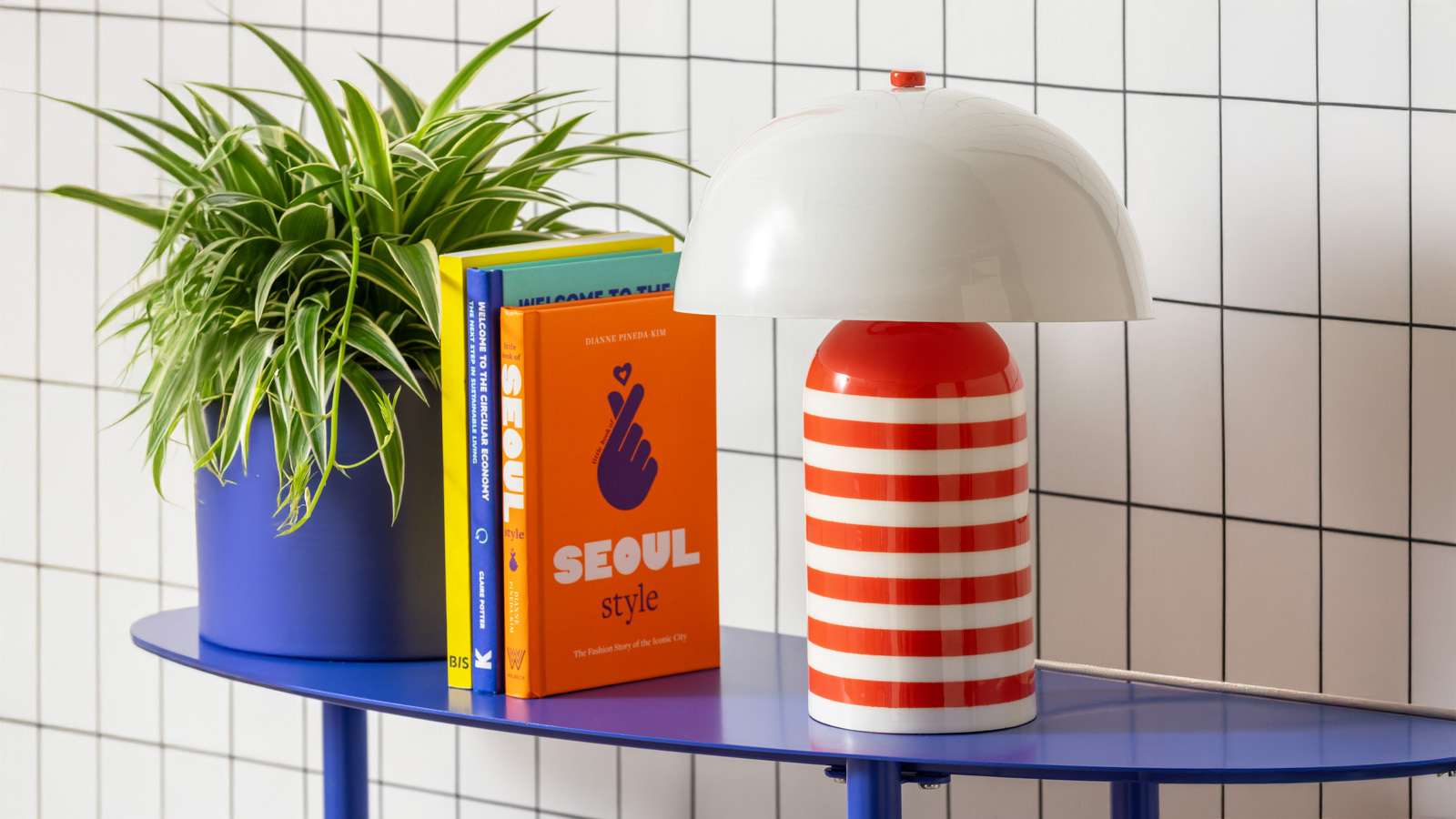 Lampe à poser champignon rayée orange - Rayado Retro