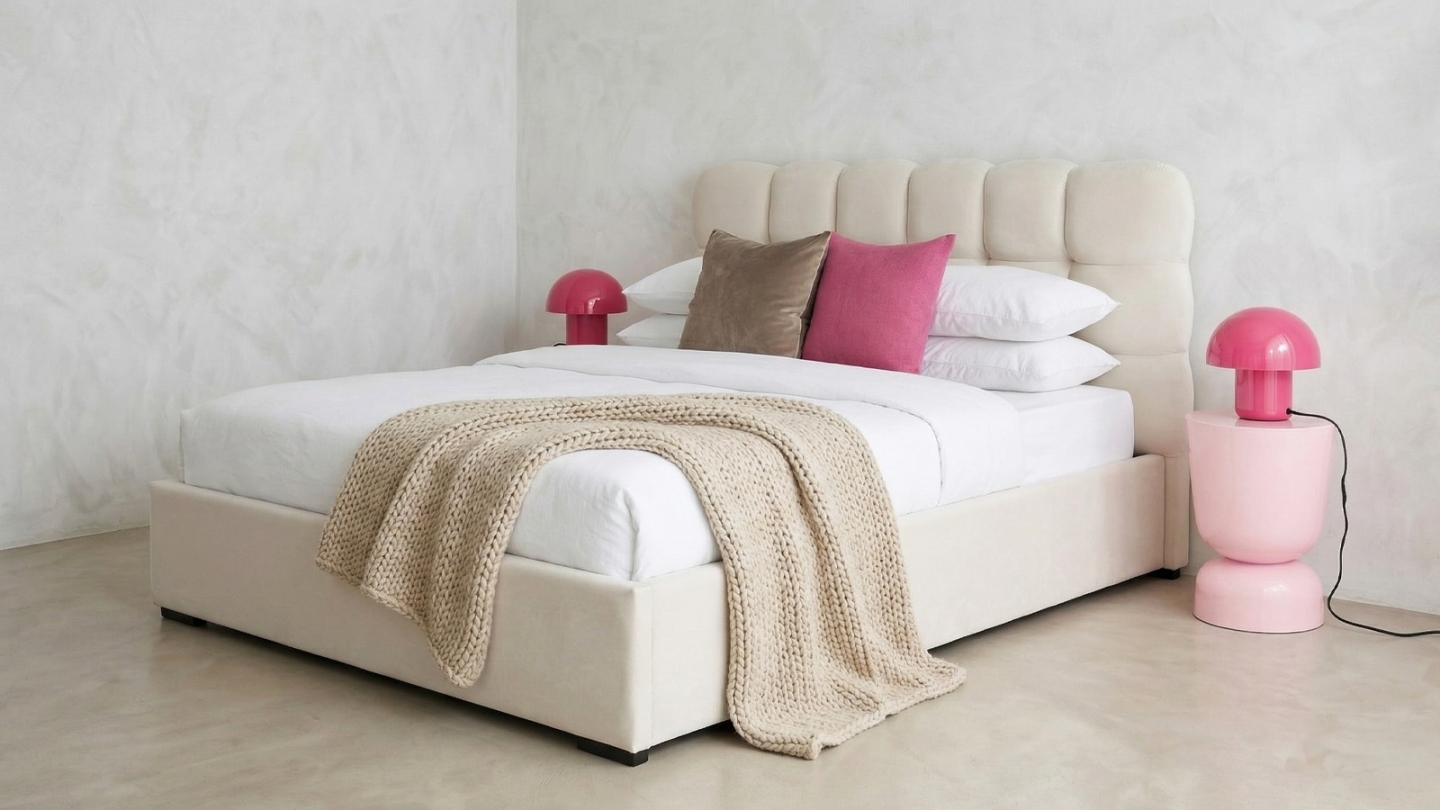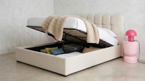 Craquez pour le charme intemporel du lit coffre Lola. Son design épuré et sa tête de lit capitonnée effet bubble apporteront une touche d'élégance à votre chambre.