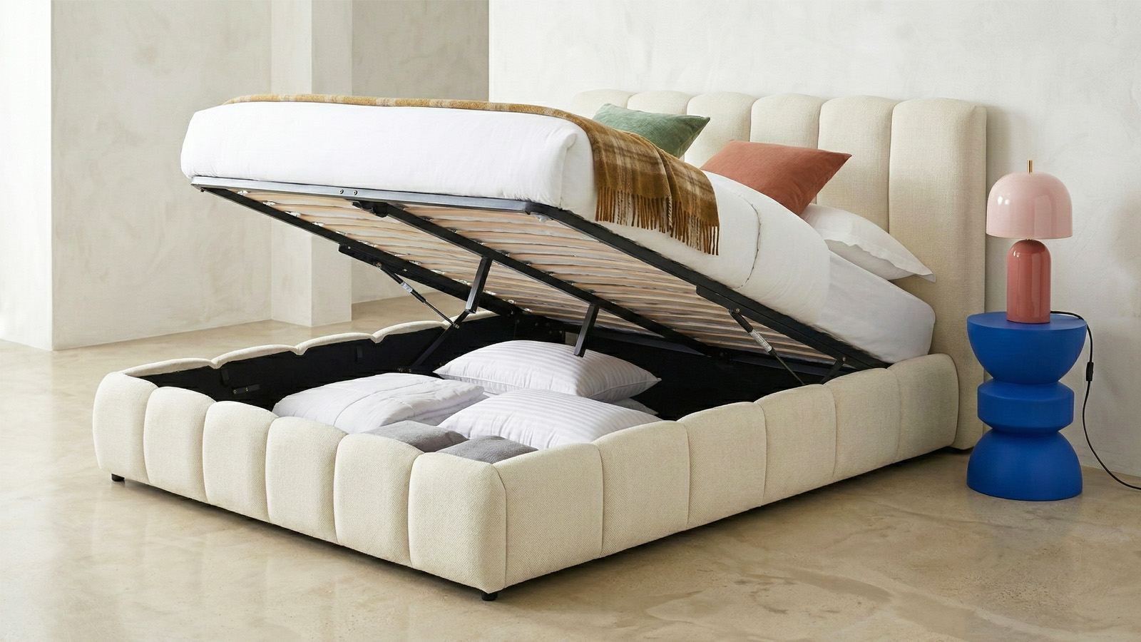 Lit coffre en tissu chenille - Nils