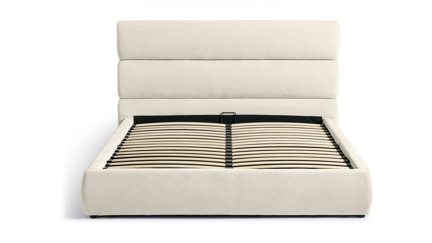 Lit coffre en velours côtelé - Tina• Structure : Contreplaqué issu de bois FSC, métal• Revêtement : Velours côtelé 380 g/m² certifié Oekotex• Couleur : Beige• Avec sommier relevable à lattes et tête de lit• Garnissage : Mousse• Sommier 26 lattes (53x9 mm) en bois de peuplier• Dimensions du couchage : 160 x 200 cm• Dimensions totales : 215 x 170 x 88 cm•...