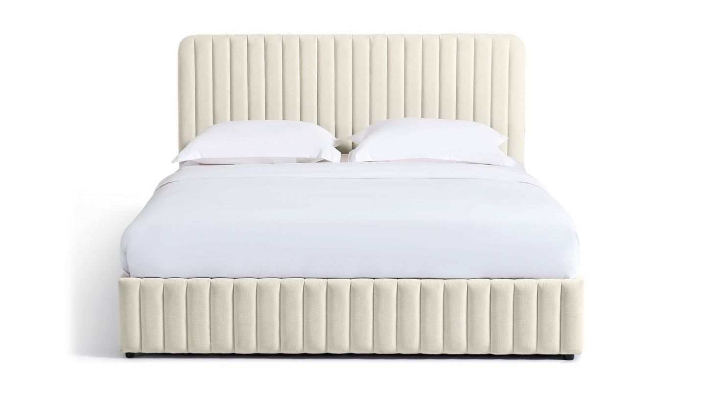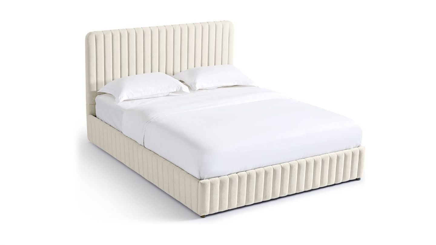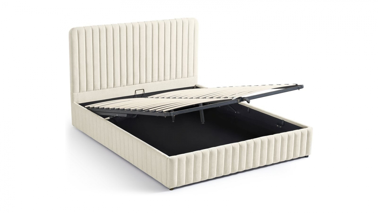 En stockLit coffre en tissu bouclé - Madisson• Structure : MDF• Revêtement : Tissu bouclé• Couleur : Beige• Sommier coffre à lattes• Dimensions du couchage : 160 x 200 cm• Dimensions totales : 228 x 188 x 97 cm• Hauteur du cadre de lit : 28 cm