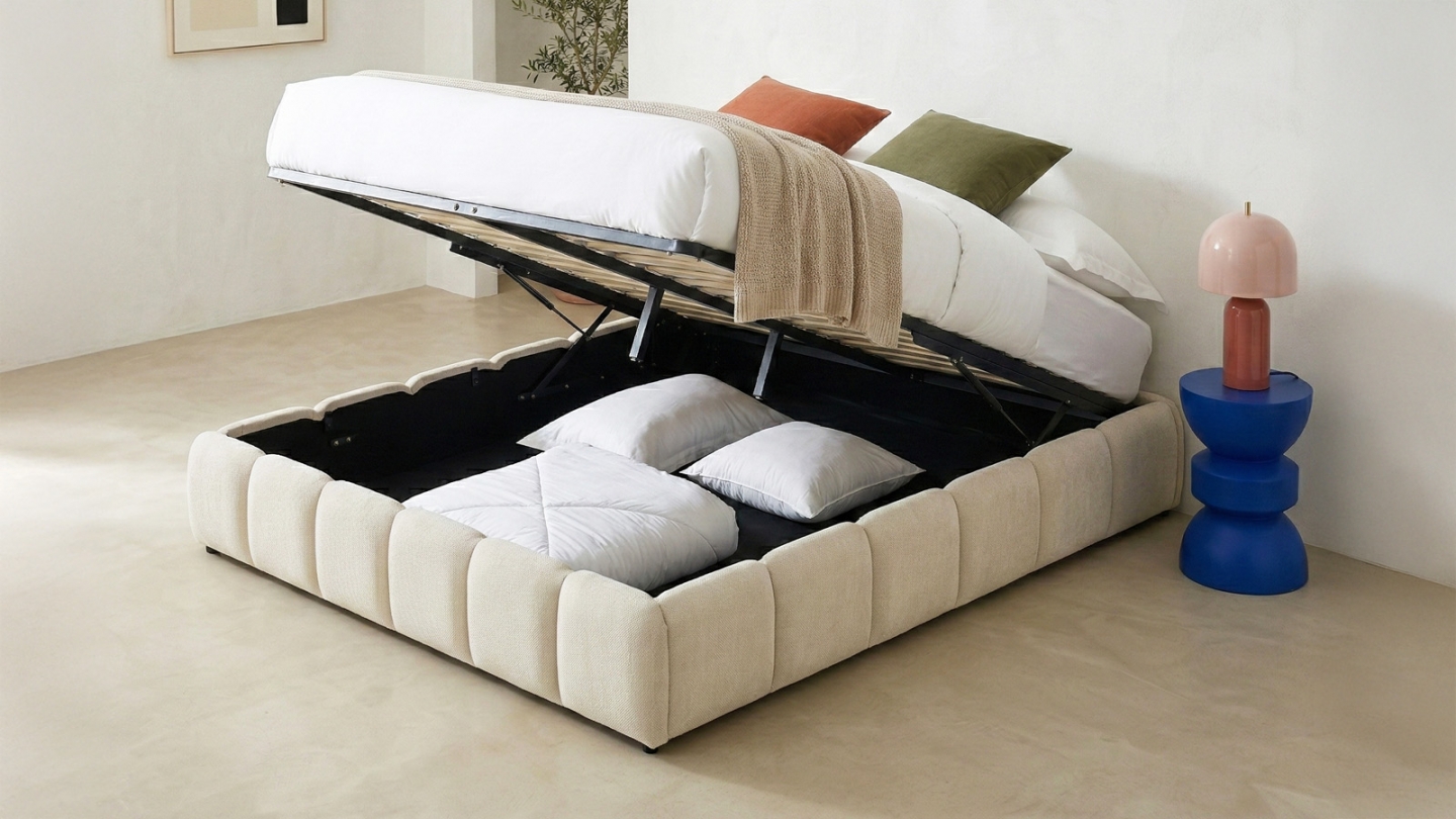 Lit coffre en tissu chenille - Nils