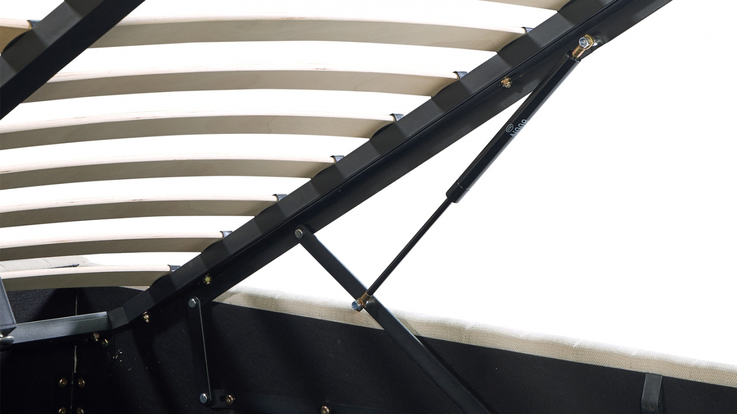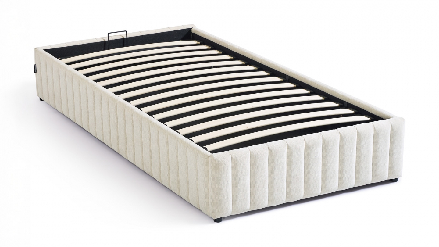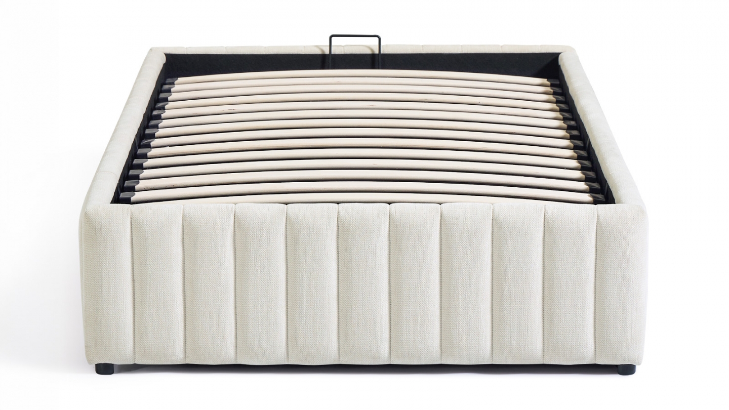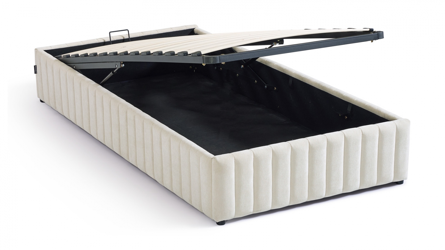• Sommier 14 lattes en bois de Peuplier (ép. 10 mm). Espacement entre les lattes : 70 mm. Système d'ouverture à vérins hydrauliques.