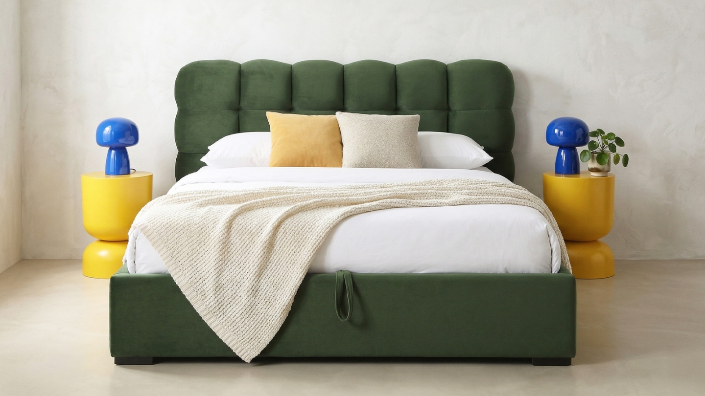 Craquez pour le charme intemporel du lit coffre Lola. Son design épuré et sa tête de lit capitonnée effet bubble apporteront une touche d'élégance à votre chambre.
