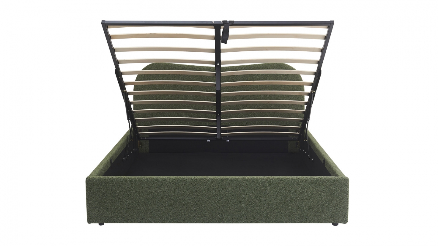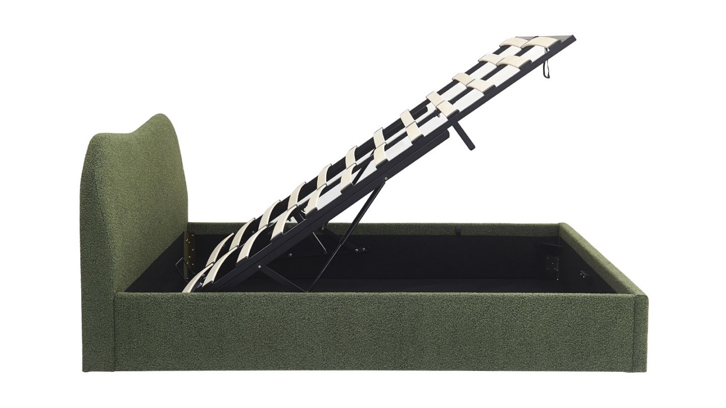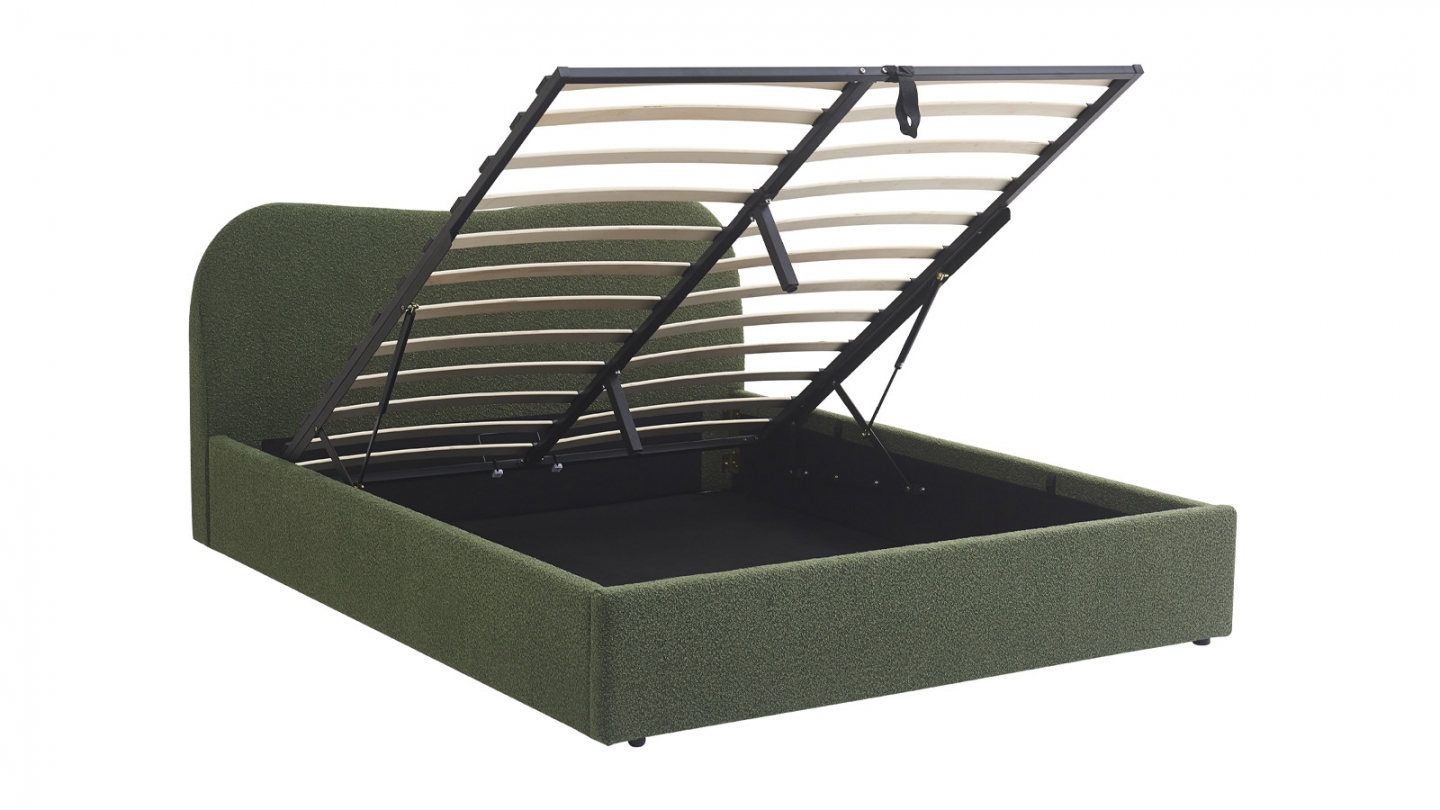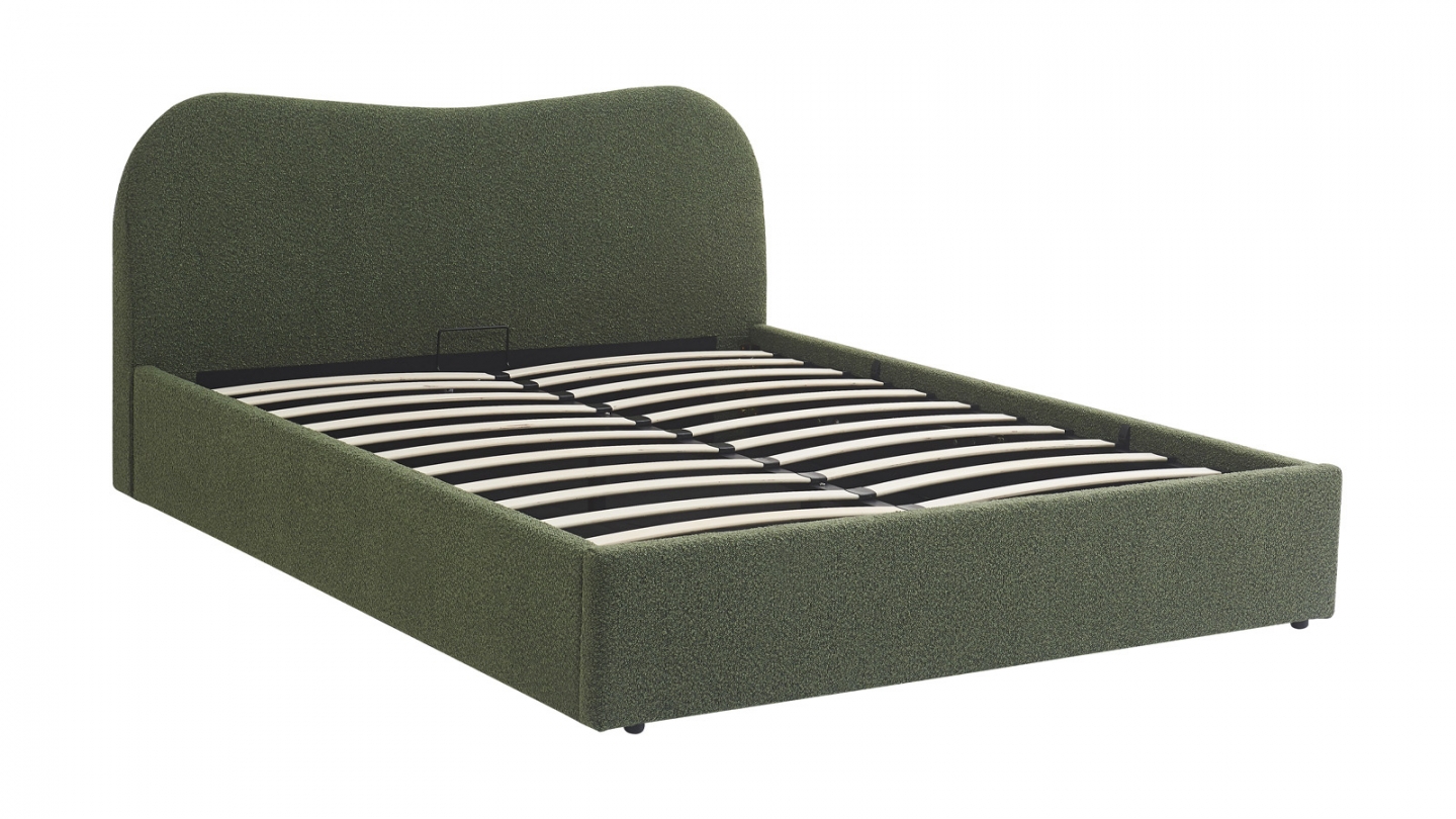 Lit coffre avec tête de lit arrondie en tissu bouclé - Suzon • Coloris : Beige • Revêtement : Tissu bouclé • Tête de lit arrondie intégrée • Structure robuste : MDF + bois massif – pour une excellente durabilité • Sommier coffre pratique avec vérins – accès facile au rangement intégré • 24 lattes pour un bon maintien du matelas • Couchage 160 x 200...