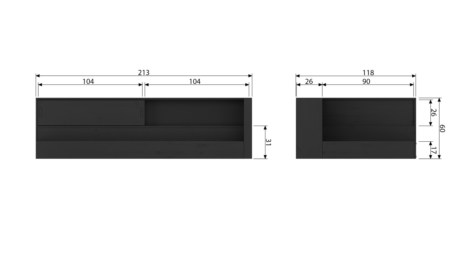 • Dimensions : H 60 cm x L 213 cm x P 118 cm