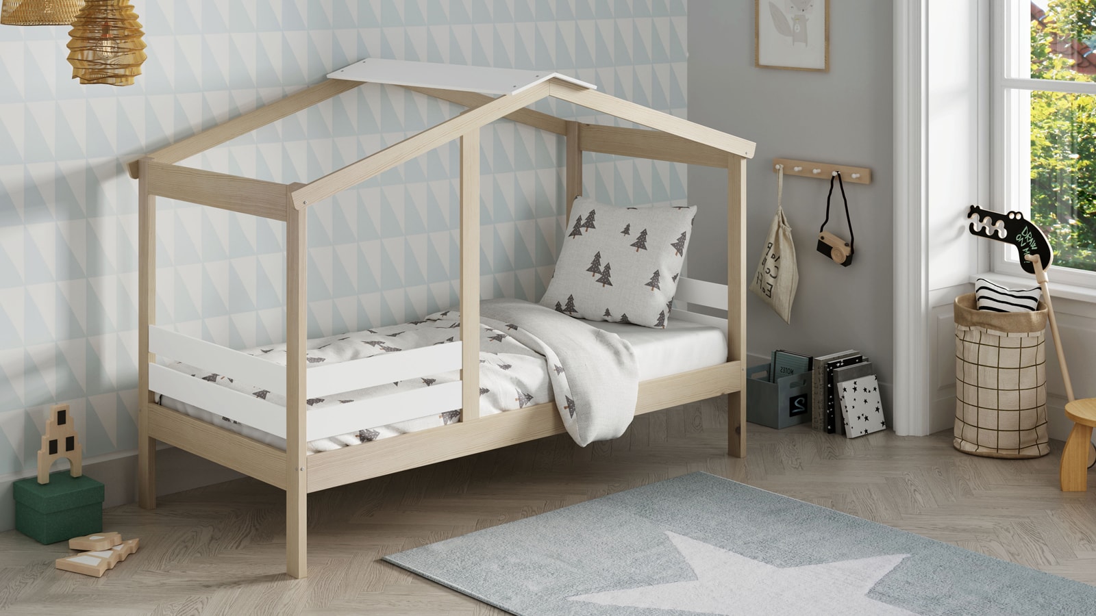 Lit cabane enfant 90x190 cm en bois clair / blanc - Violette