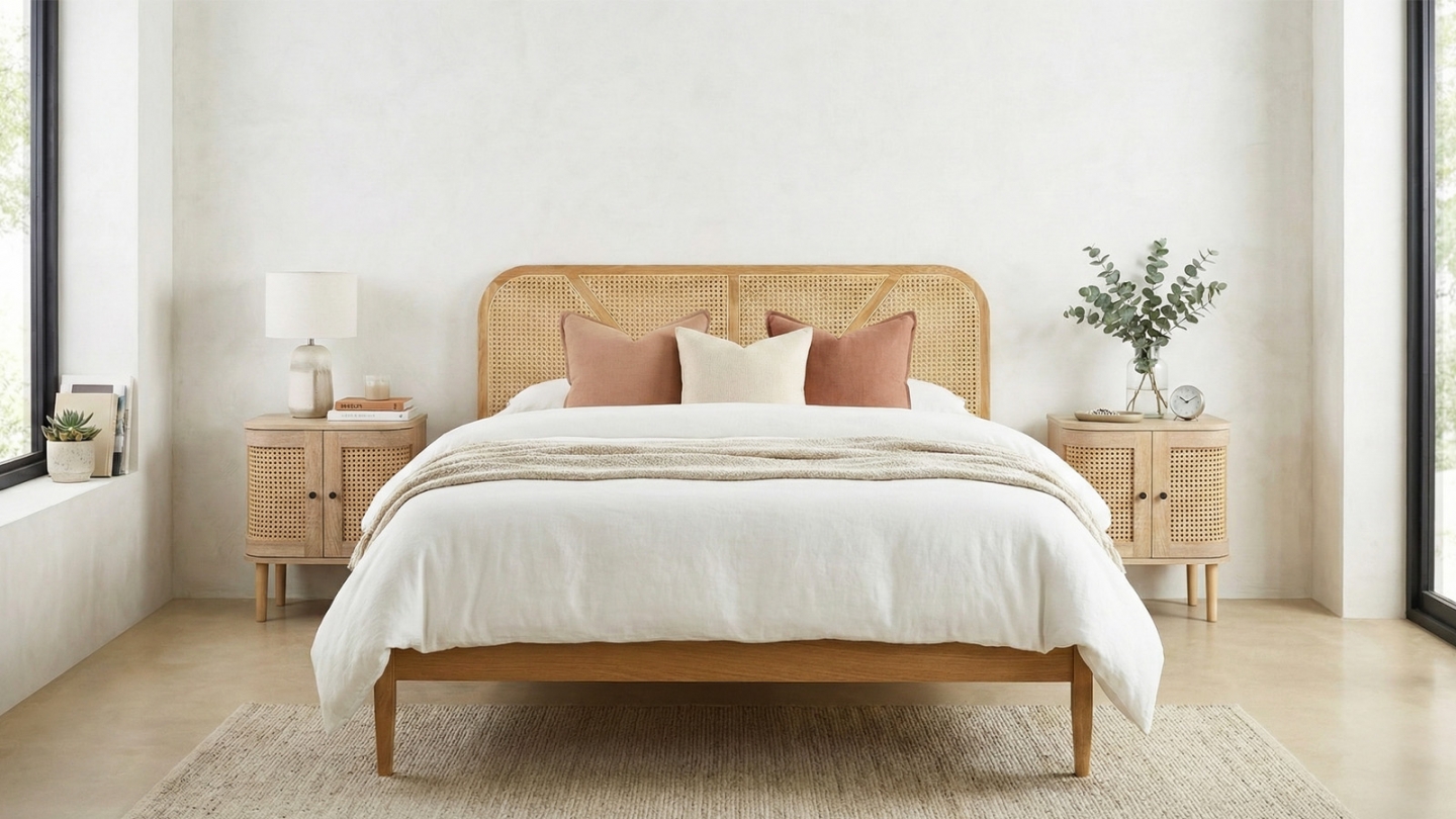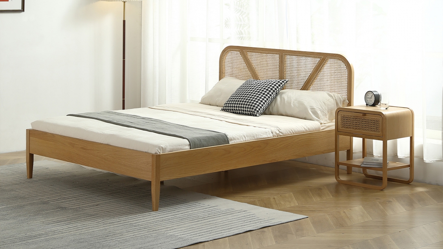 • Cadre de la tête de lit en chêne massif avec cannage naturel