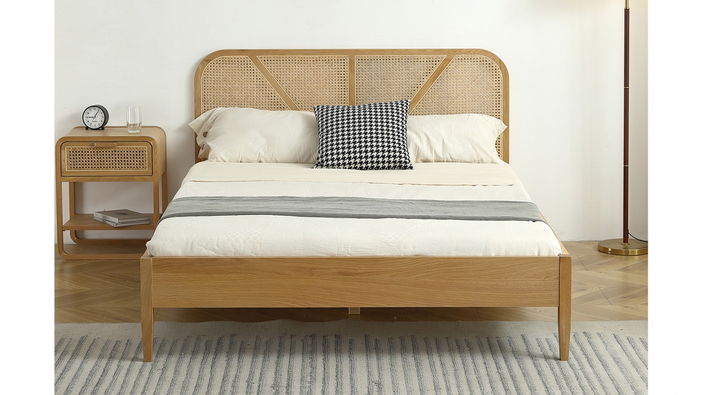 • Cadre de la tête de lit en chêne massif avec cannage naturel